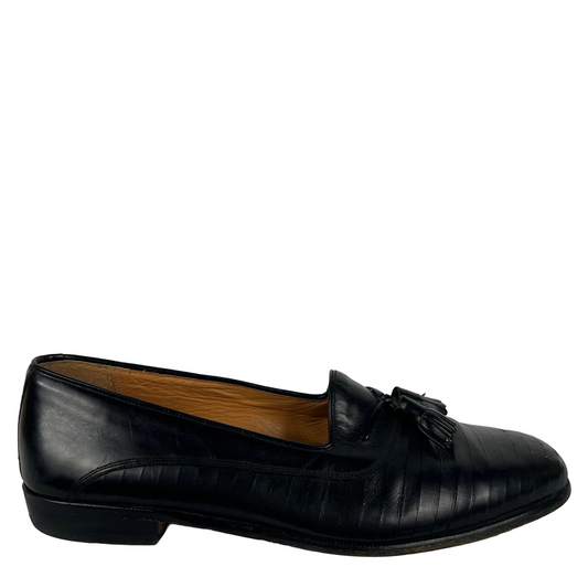 90s Paneled Black Leather Tassel Loafers- M's 10.5, W's 12