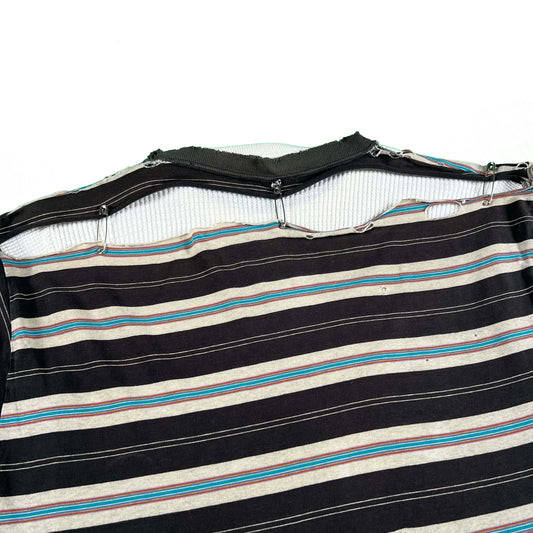 90s Thrashed & Safety Pinned Striped Tee & Waffle Knit Thermal- XL