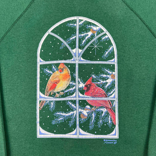 90s Snowy Cardinals Sweatshirt- L