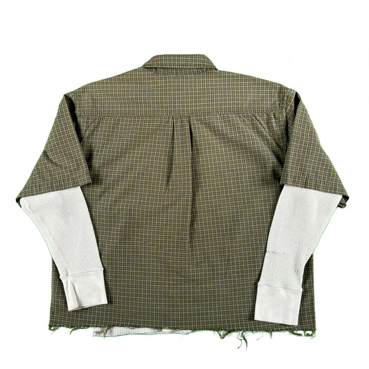 00s Old Navy Cropped Plaid Shirt & Waffle Knit Thermal- L