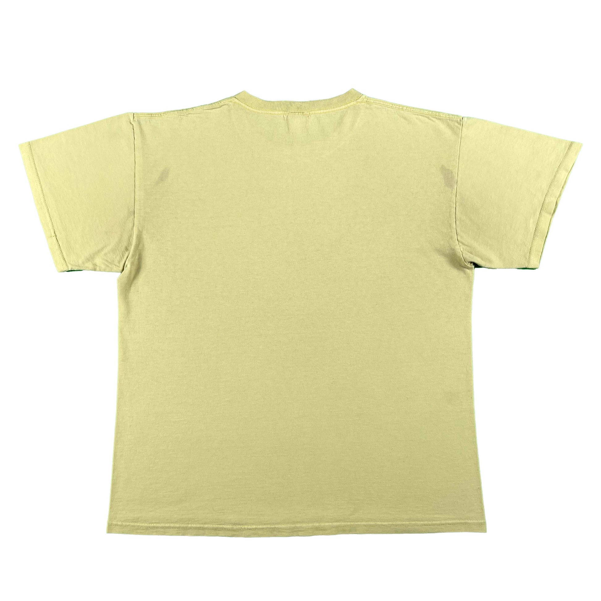 stellar comic style cat tee!!! on a butter yellow FOTL blank with some obvious wear