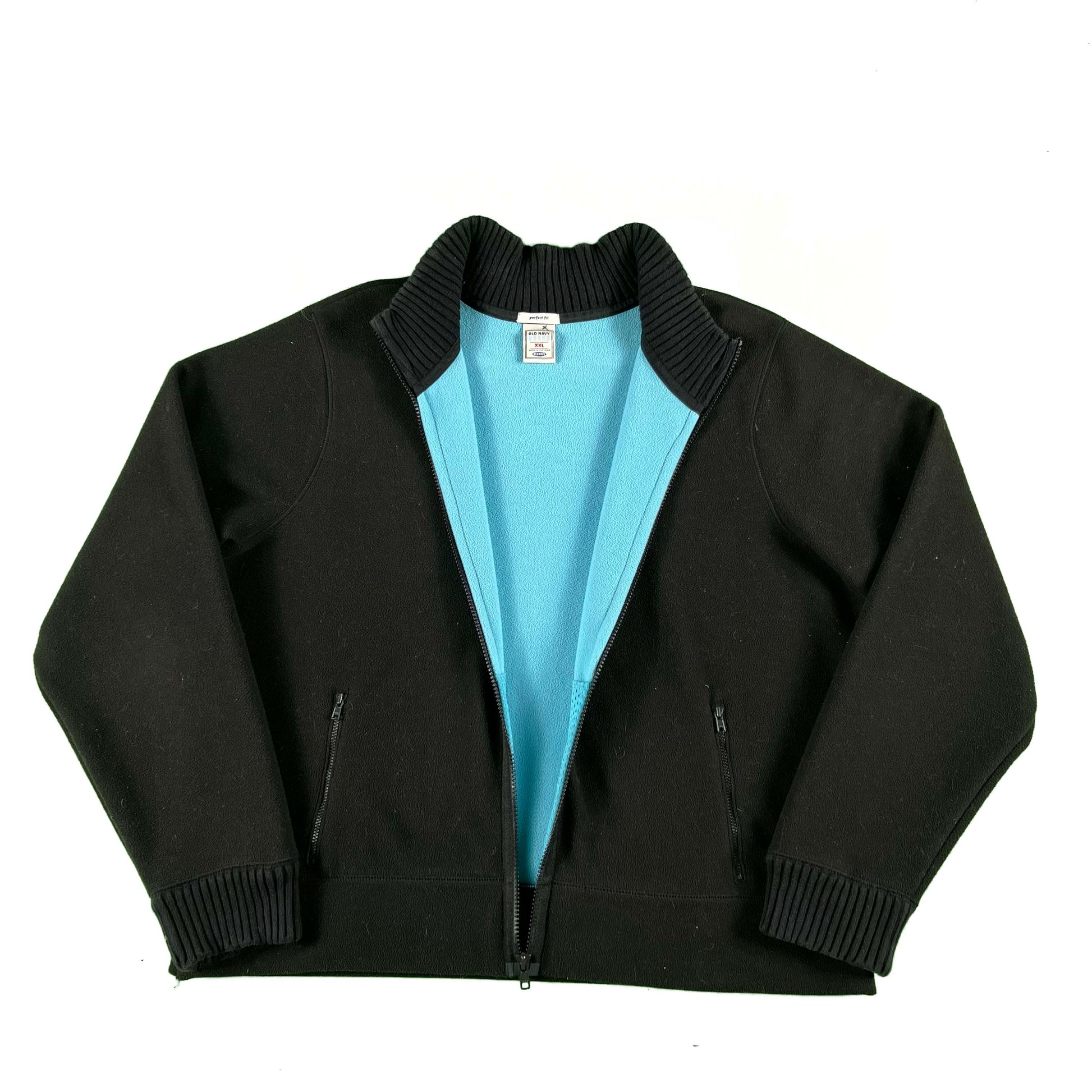 2006 Old Navy Cotton Candy Blue Lined Black Fleece Jacket- L