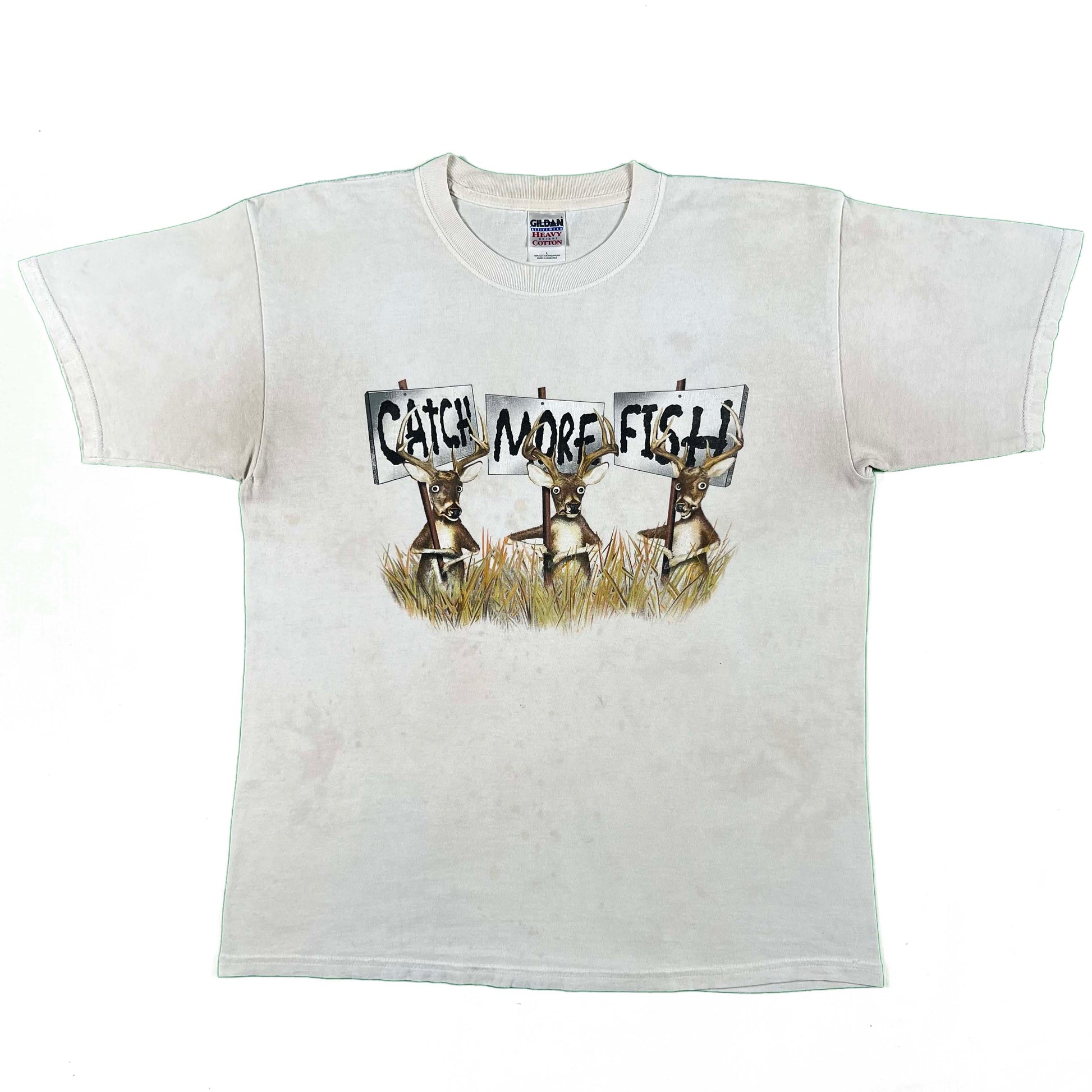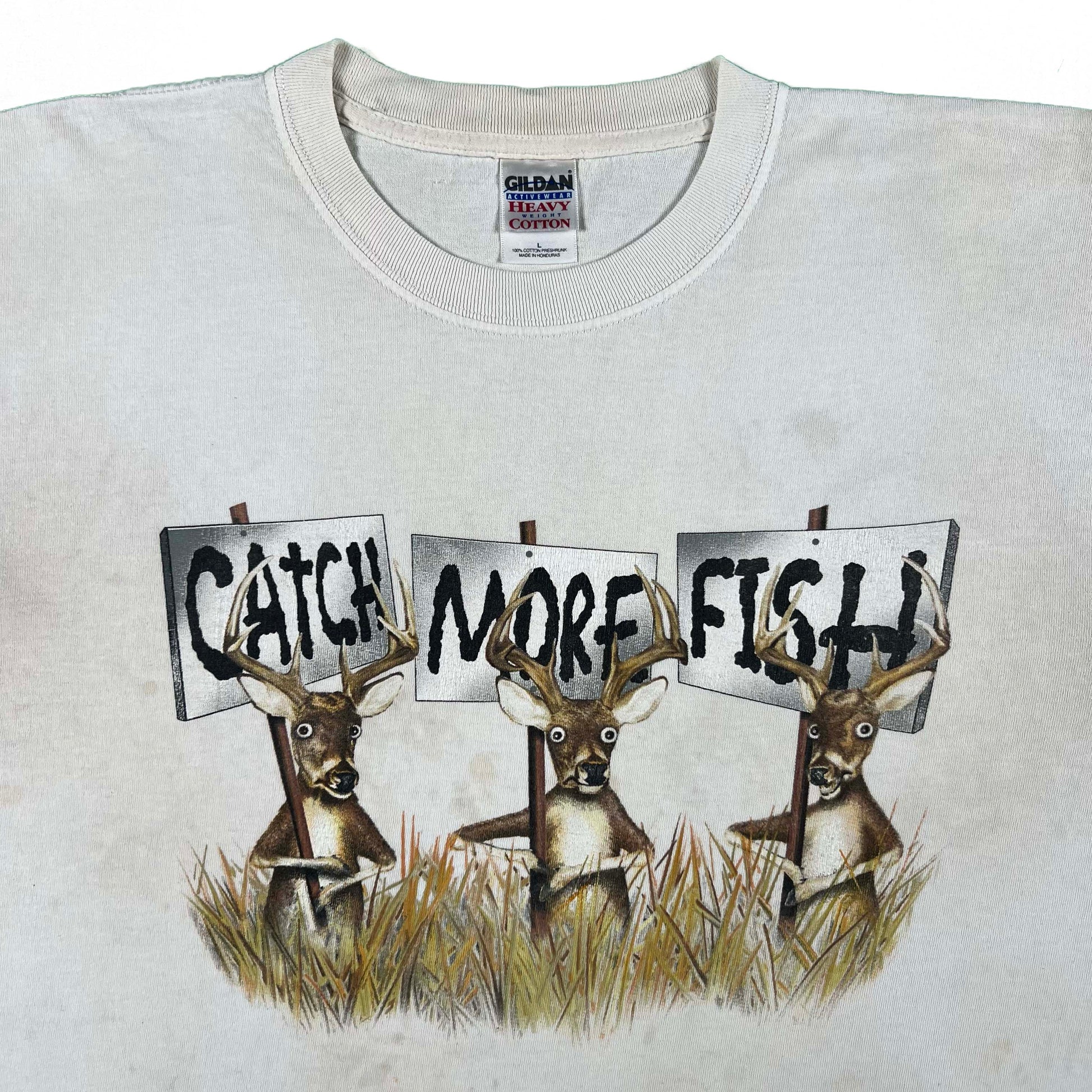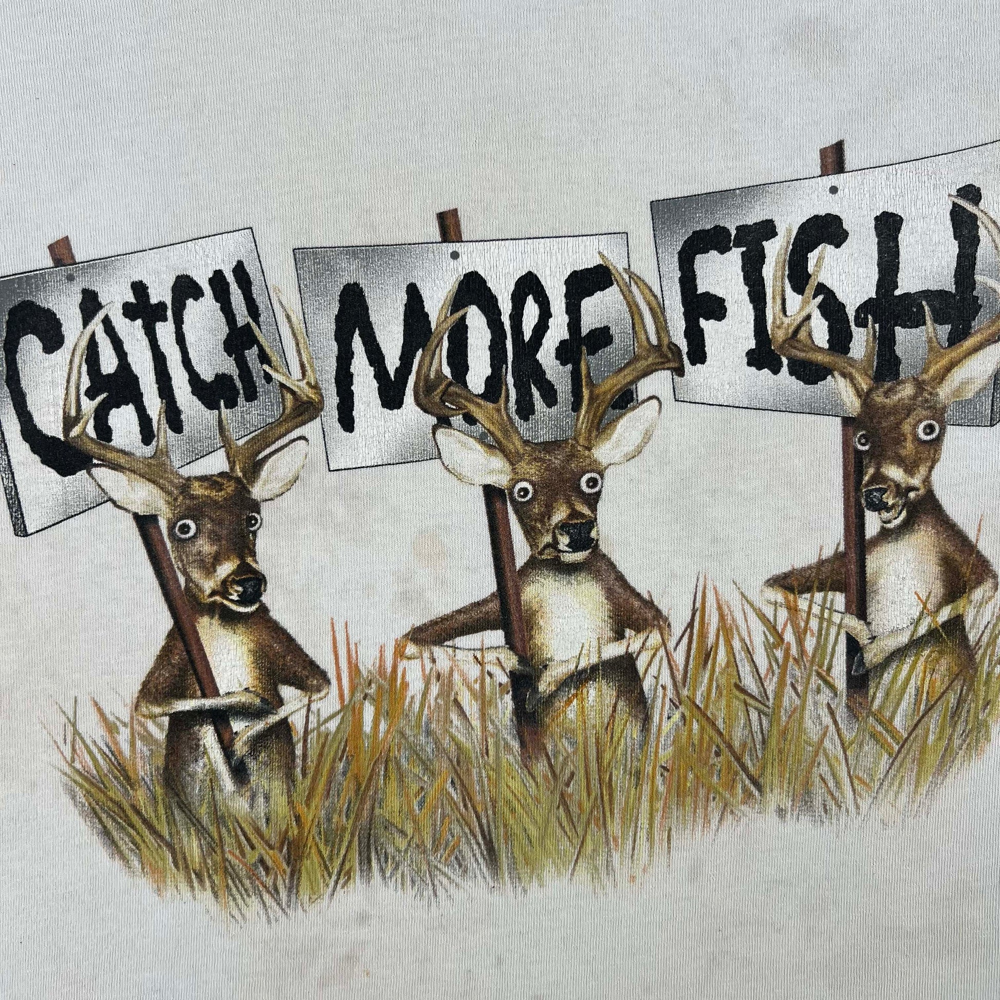 chick fil a vibes with deer saying catch more fish signs! perfectly beat up