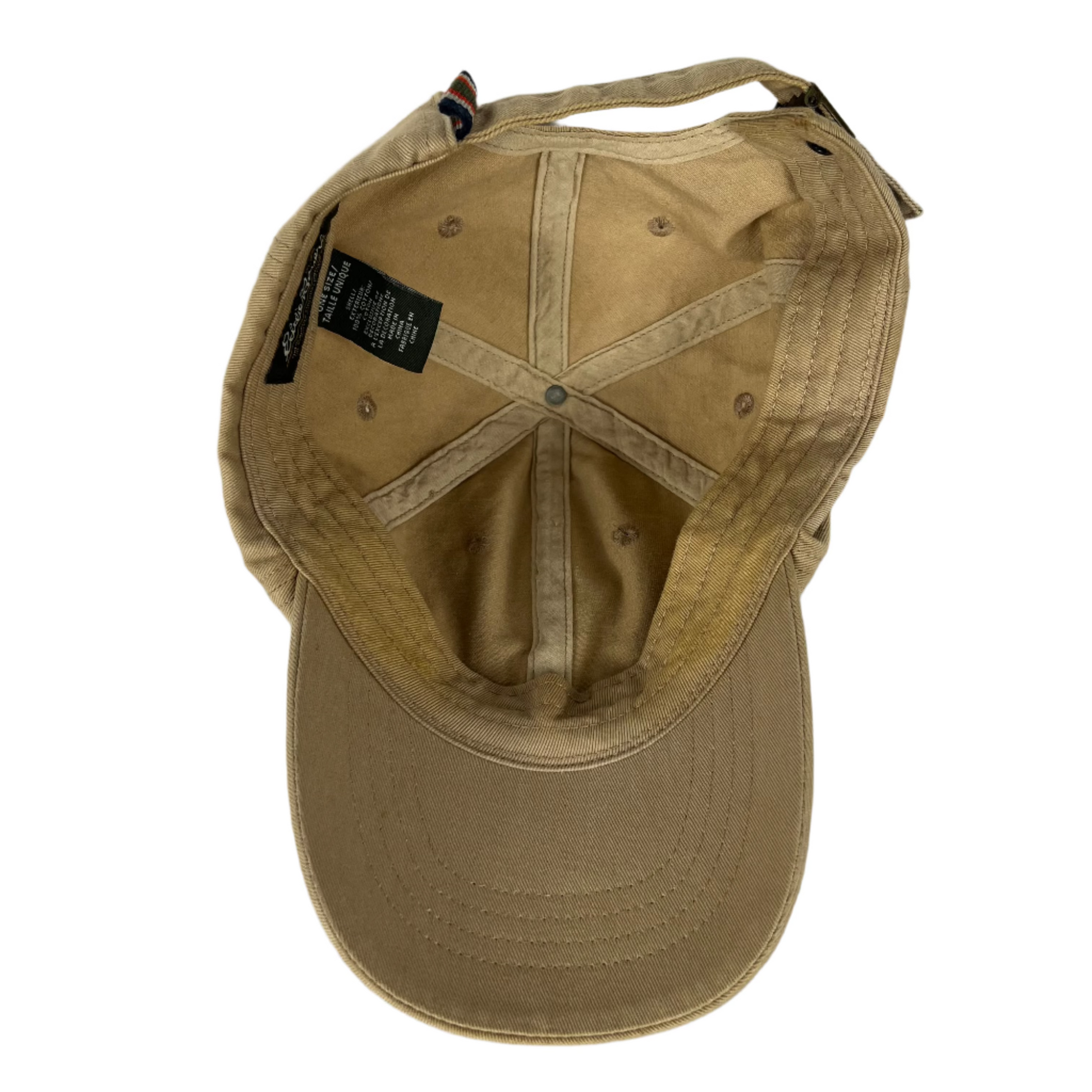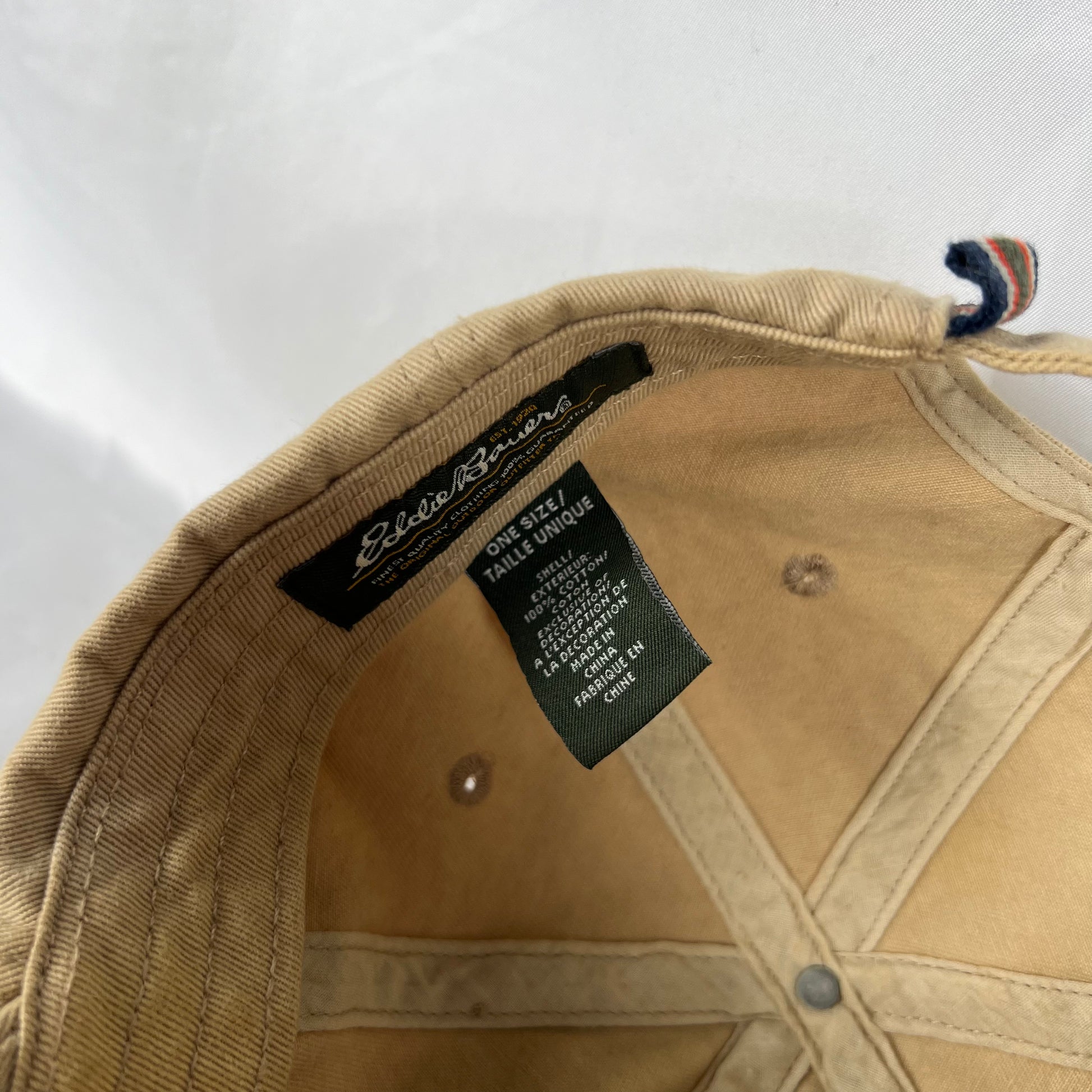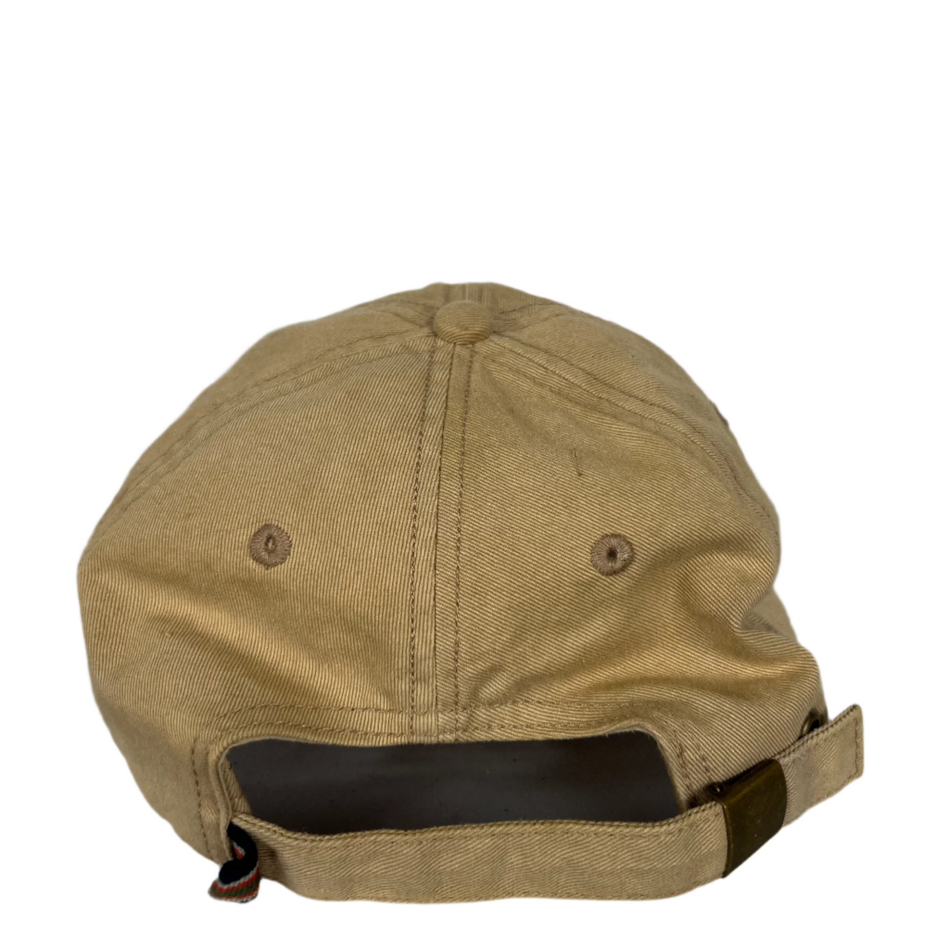 such a good dad hat!! lovely earth tone tan colors, has a bit of wear