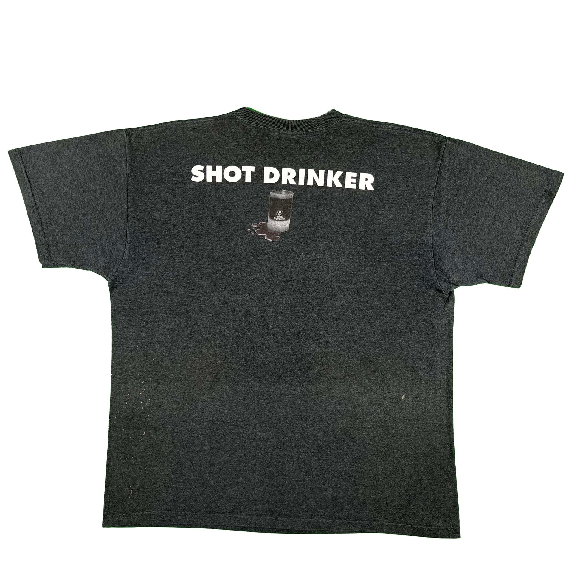 SHOT DRINKER, hahah great Jager tee. sun faded dark grey/almost black color