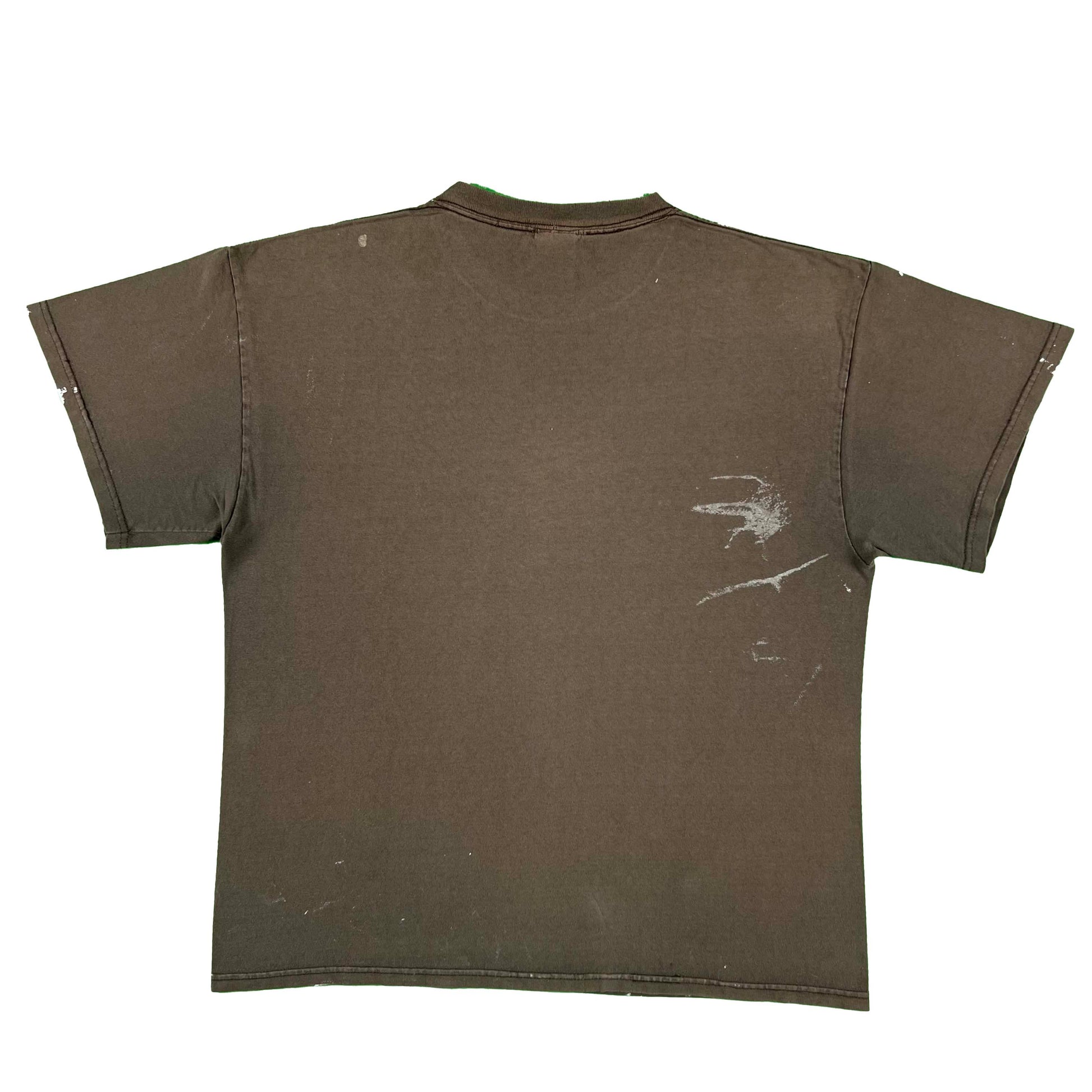 PLAY IN THE DIRT with this gorgeously sun faded brown tee with paint markings