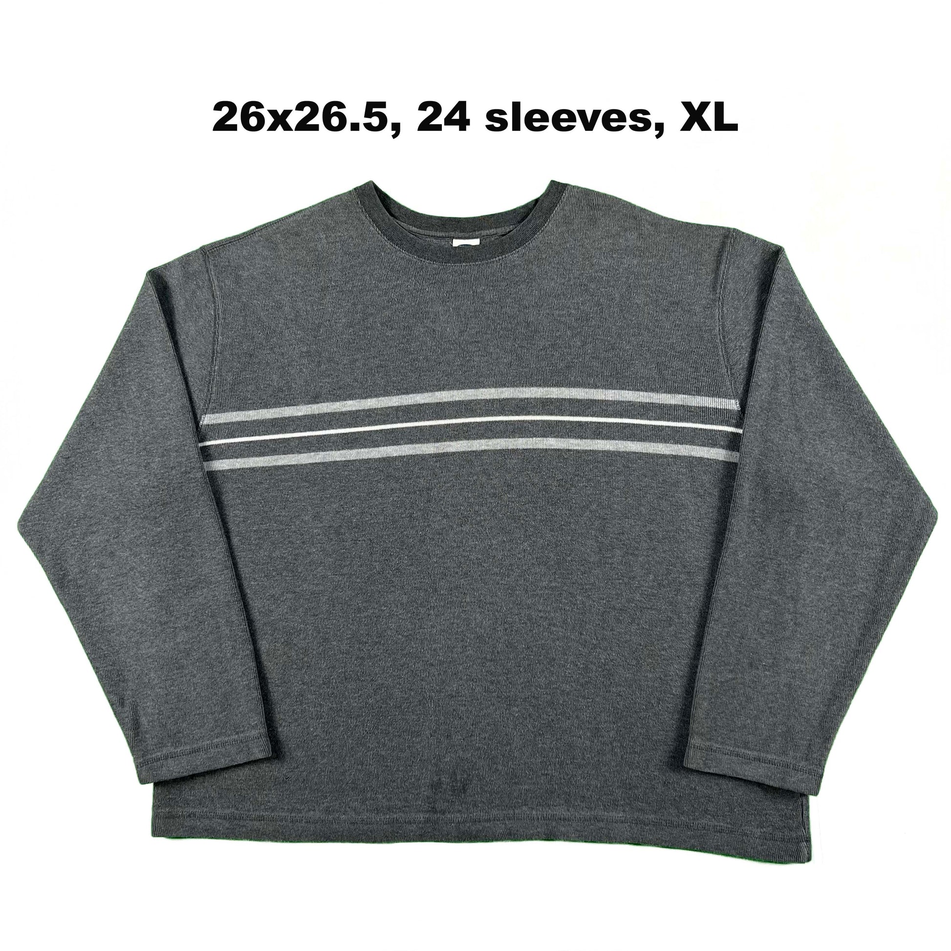 cozy sweater/sweatshirt mix!! 100% cotton, almost like a thermal, love the stripes on the collar of the navy one. big stripes across on the dark grey one!! I will add as they come in. various fading and wear on each