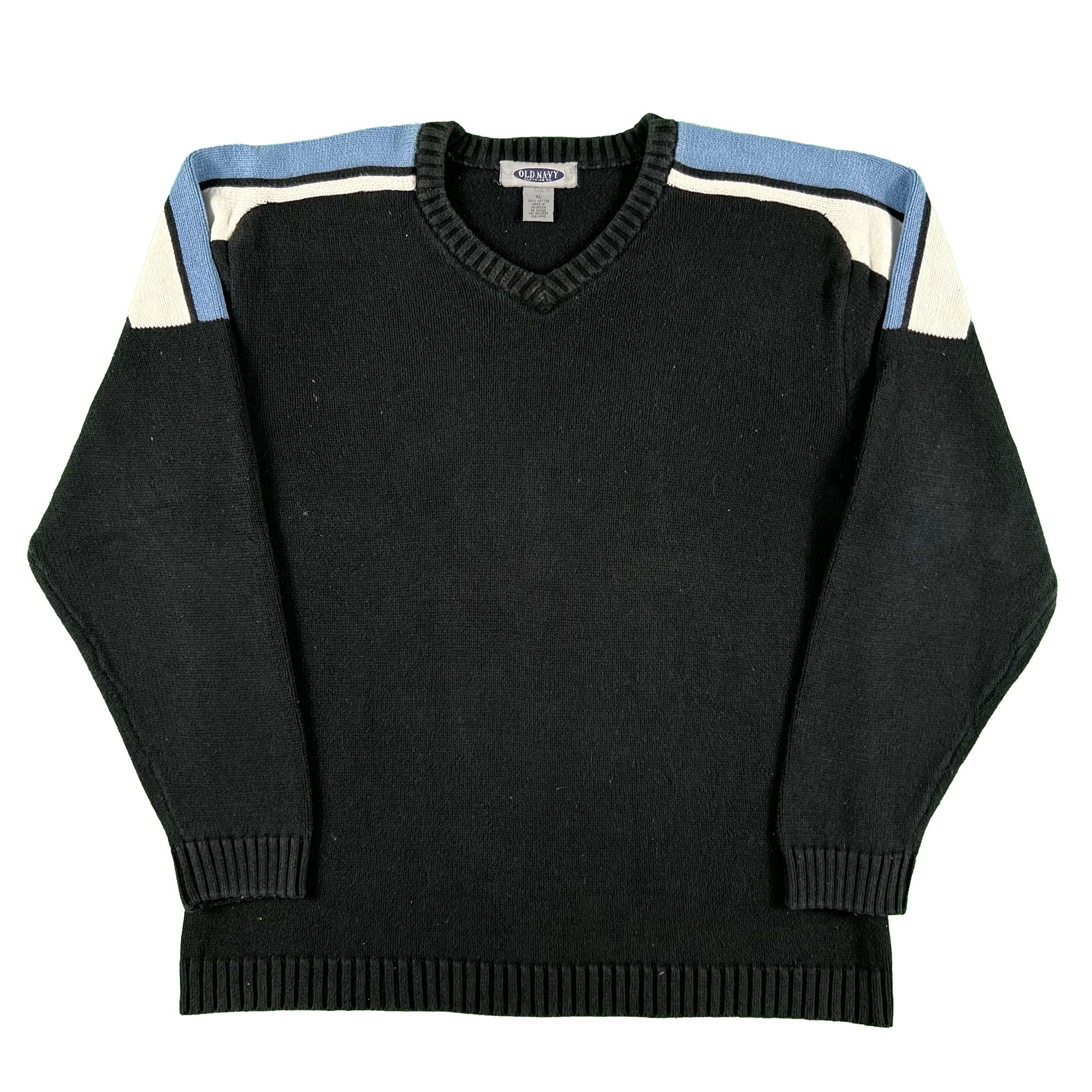 idk what to call these but it's like a knit sweatshirt/heavier sweater!! skater vibes with the stripes. such a classic!! probably late 90s or early 2000s