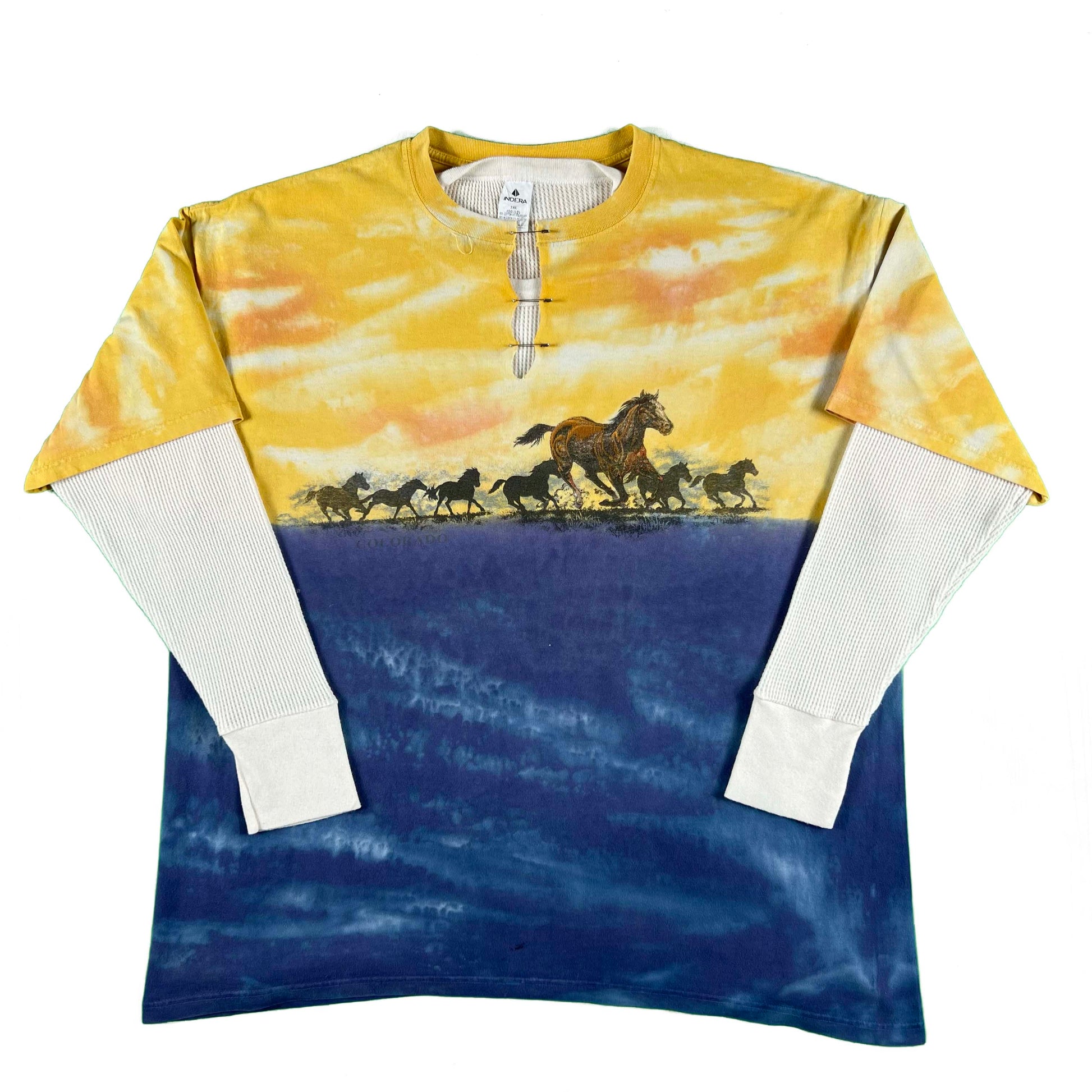 00s Safety Pinned Tie Dye Horse Tee & Waffle Knit Thermal- XXL