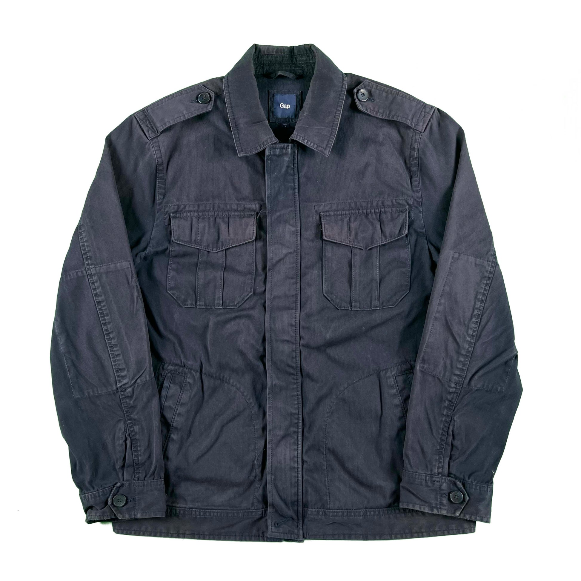 fantastic sun faded Navy blue cotton army M-65 style jacket!! classic design and nice hardware like the Gap branded zipper