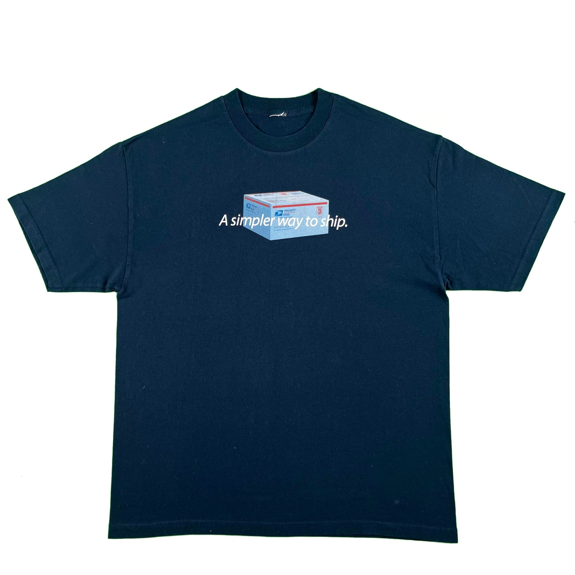 I love me some US Post Office merch!!! faded navy blue tee with a priority mail box graphic and simple text back hit