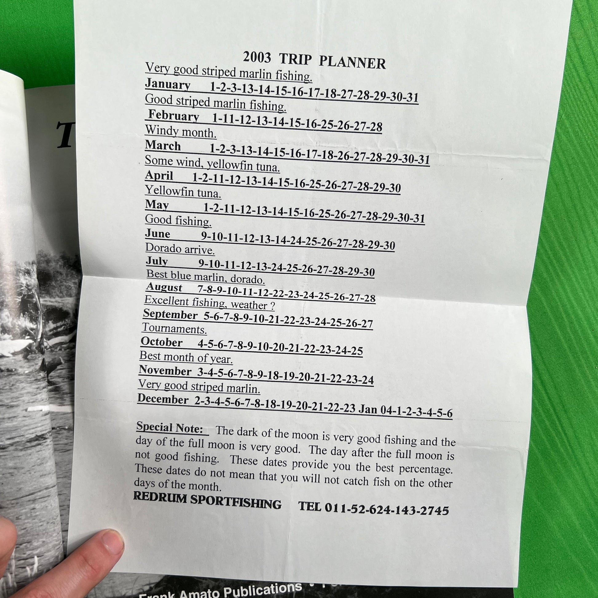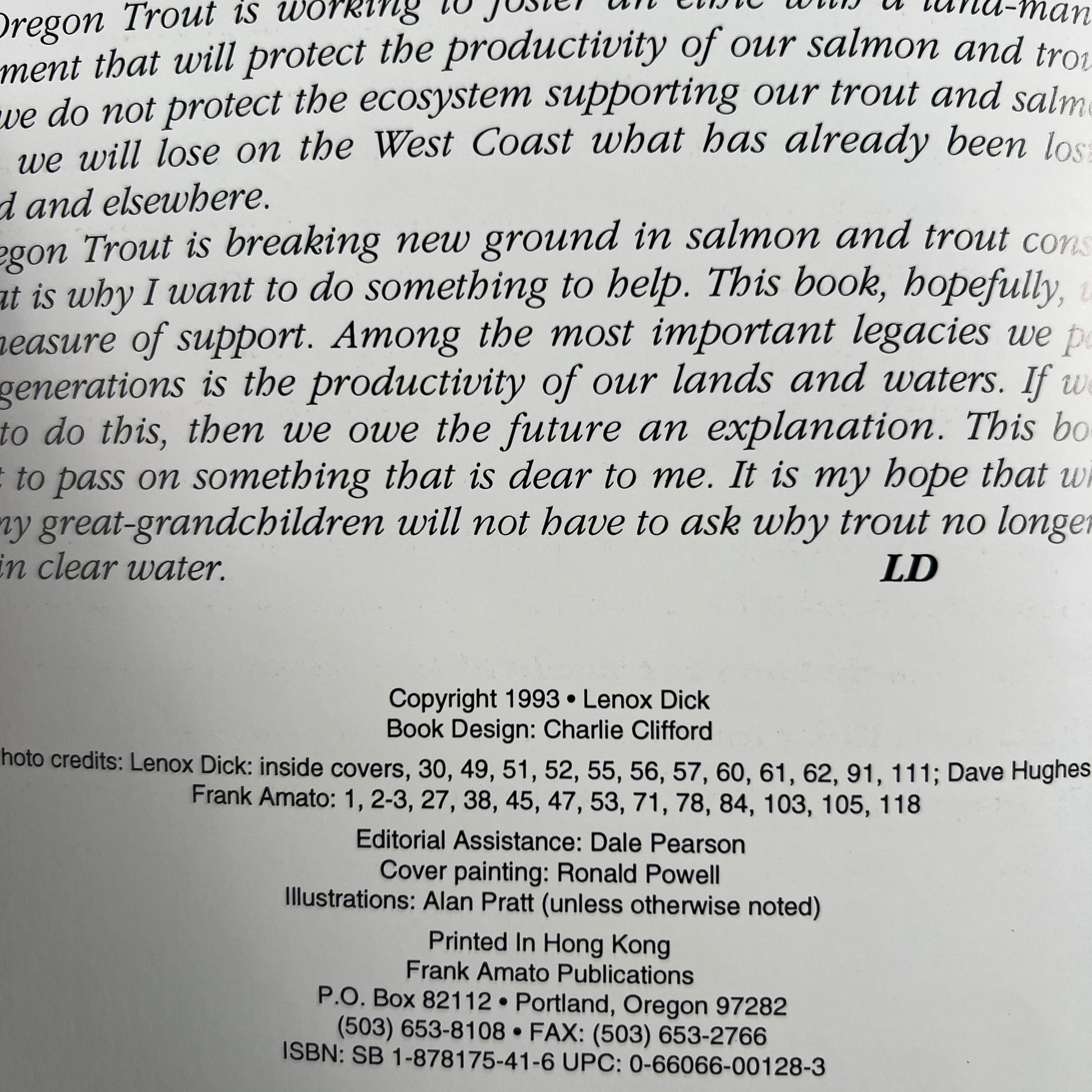 perfect fishing coffee table book/decoration piece. shiny flimsy paperback with lots of great fly fishing tips and tricks. By Lenox Dick and Friends and published by Frank Amato Publications in Portland, Oregon! previous owner left a paper with marlin fishing tips