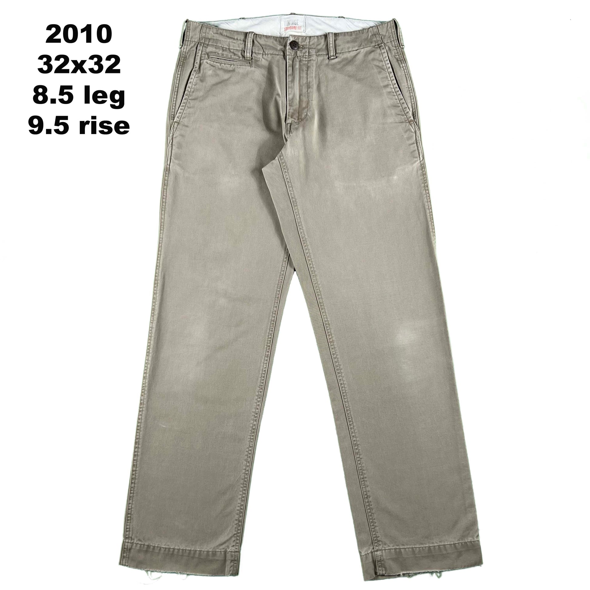 various vintage 1980s to 2000s 100% cotton chinos. mix of pleated and non pleated pants! I really love these for spring/summer with a pair of loafers. mix of colors, distressing, fading, etc. Lots of earth tone tans and beiges. The classic!! love the wear and fraying on the 1950 officer style chino!! truly great