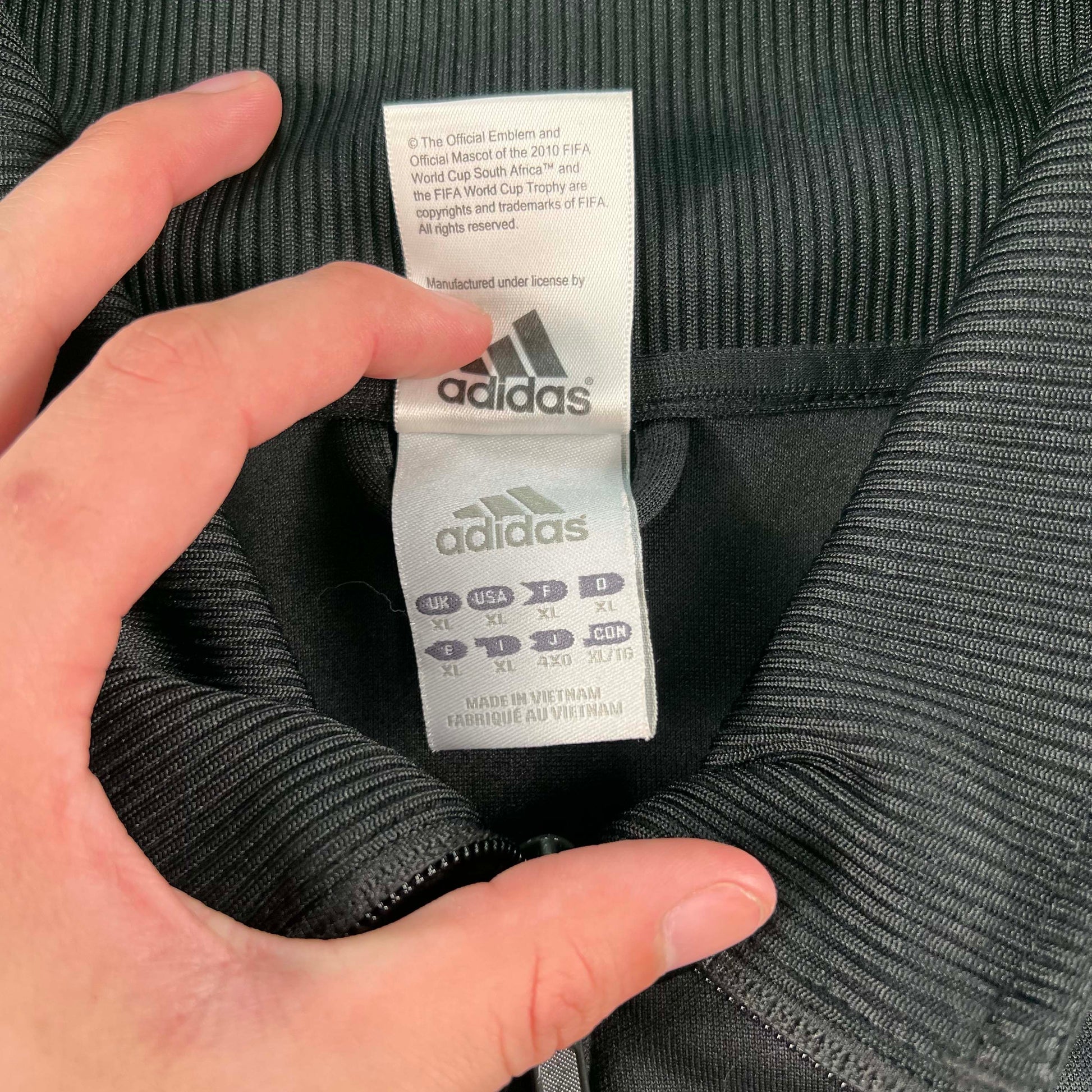 killer Adidas track style jacket!!! from the South Africa World Cup, amazing back hit and simple quote on the front. love the front pockets with zippers :)