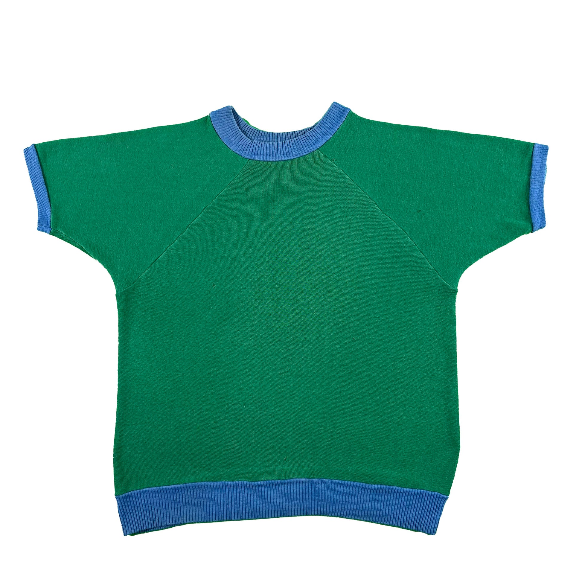 60s Green & Blue Short Sleeve Sweatshirt- M