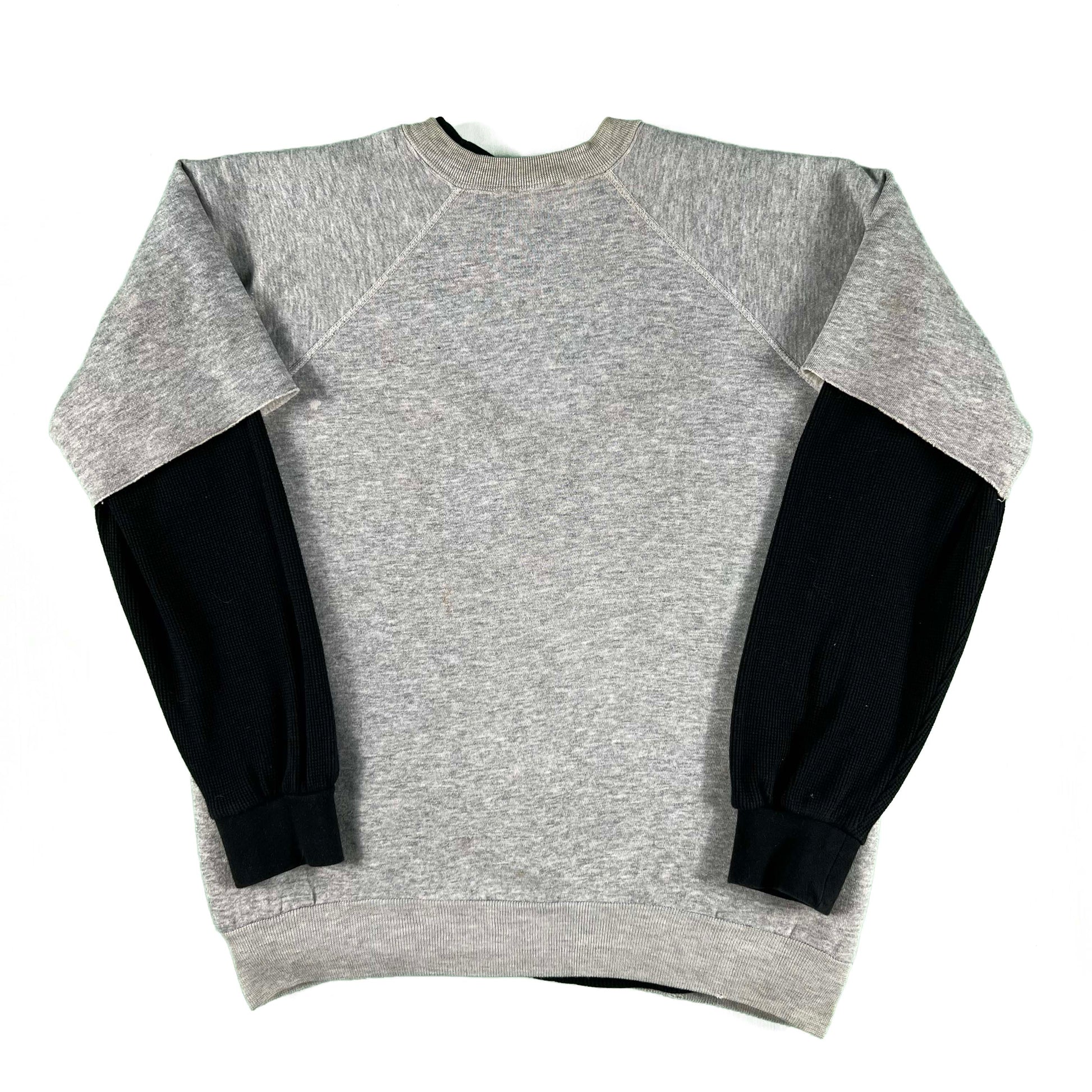 70s Chopped Grey Sweatshirt & Black Waffle Knit Thermal- XL