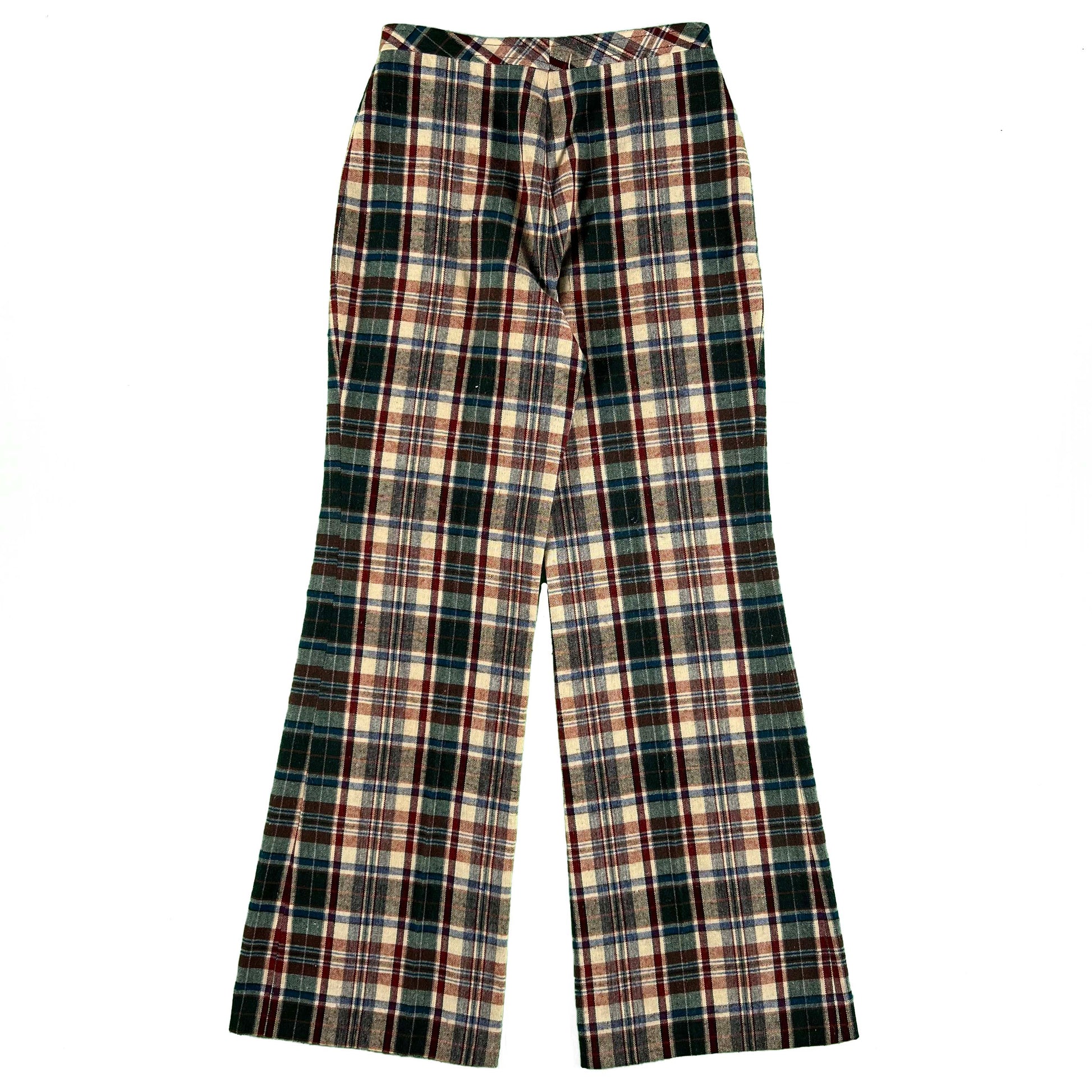 70s Plaid Flared Pants- 27x31