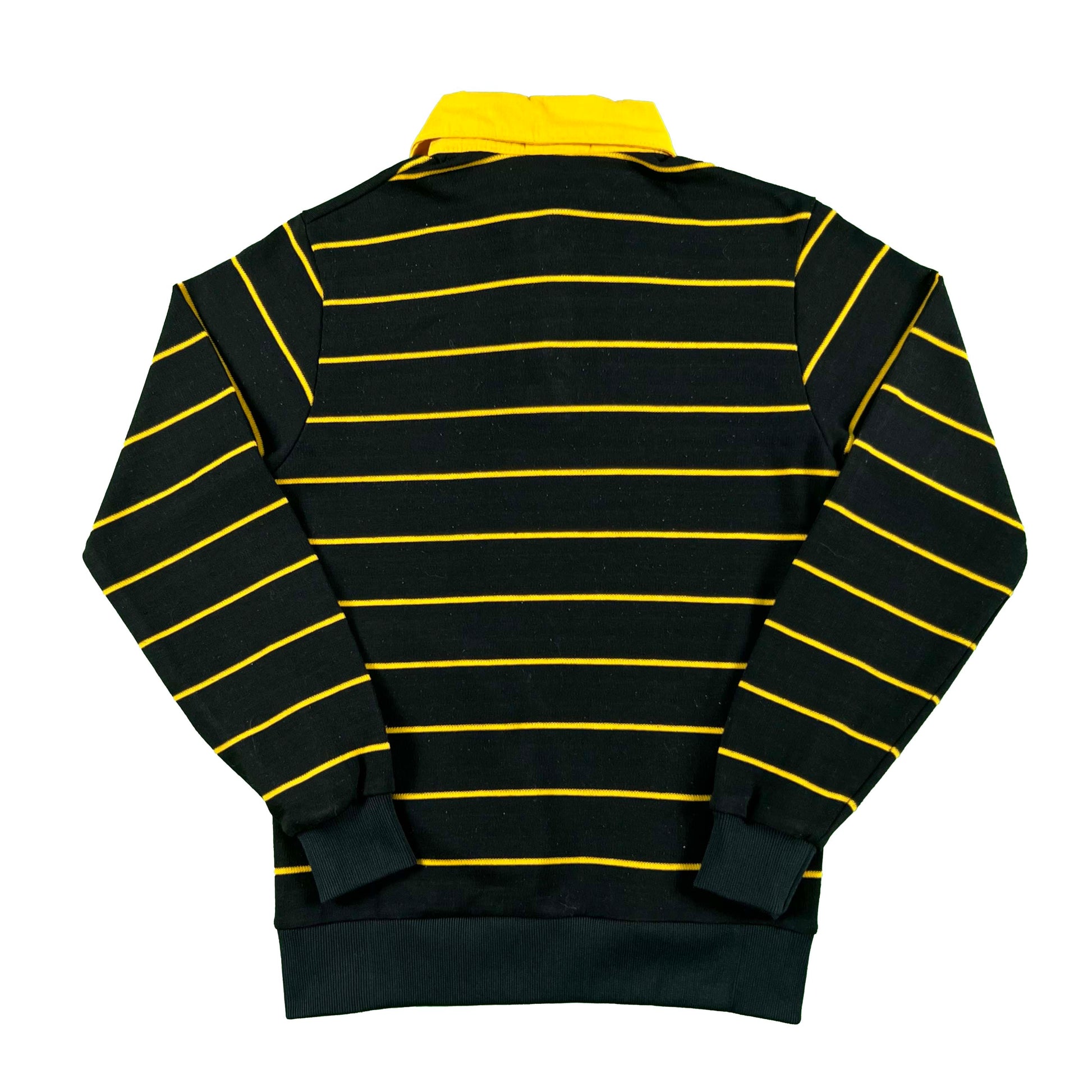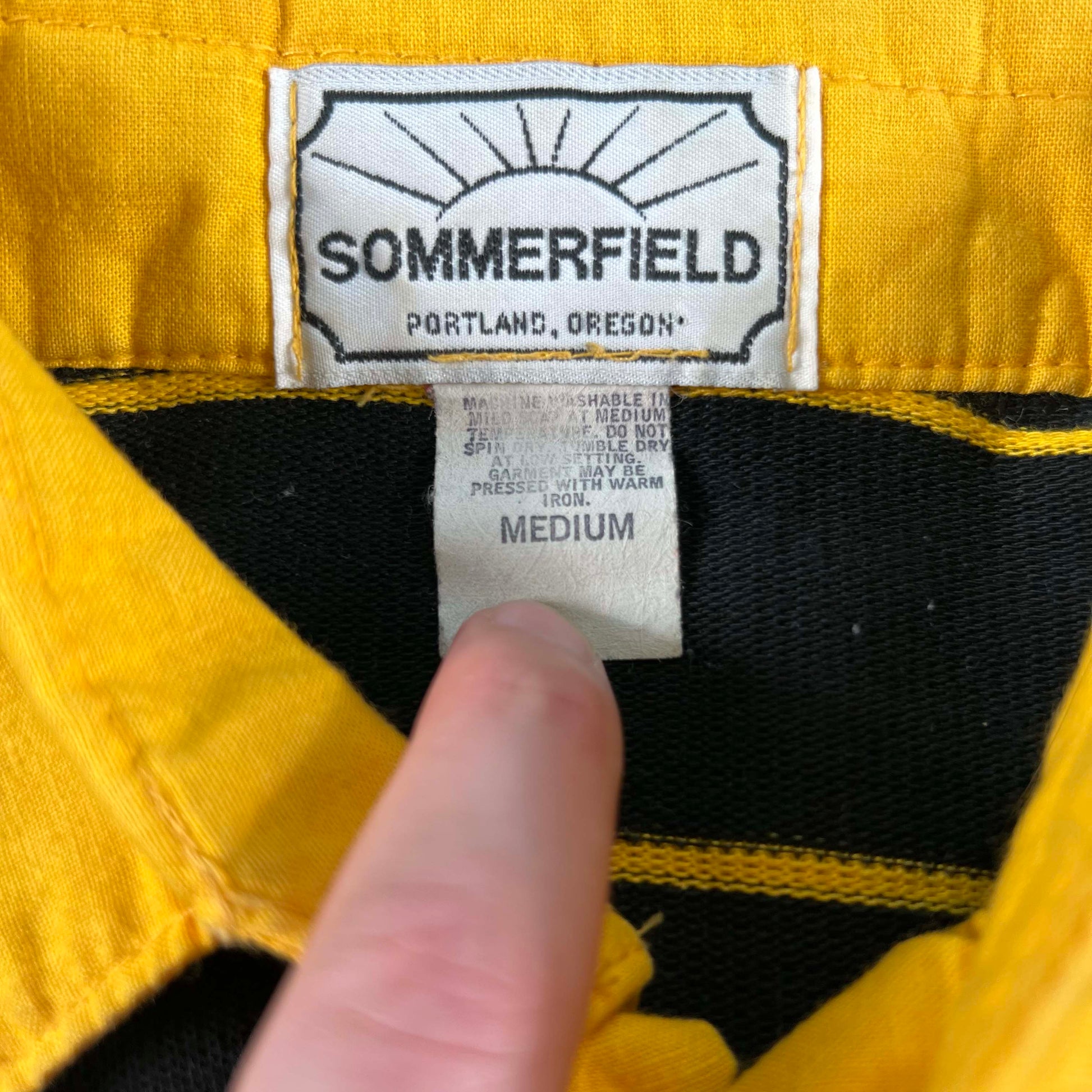I FREAKING LOVE THIS ONE!!! awesome knit rugby style polo with pockets!! made in Portland Sommerfield tag, bright yellow collar!