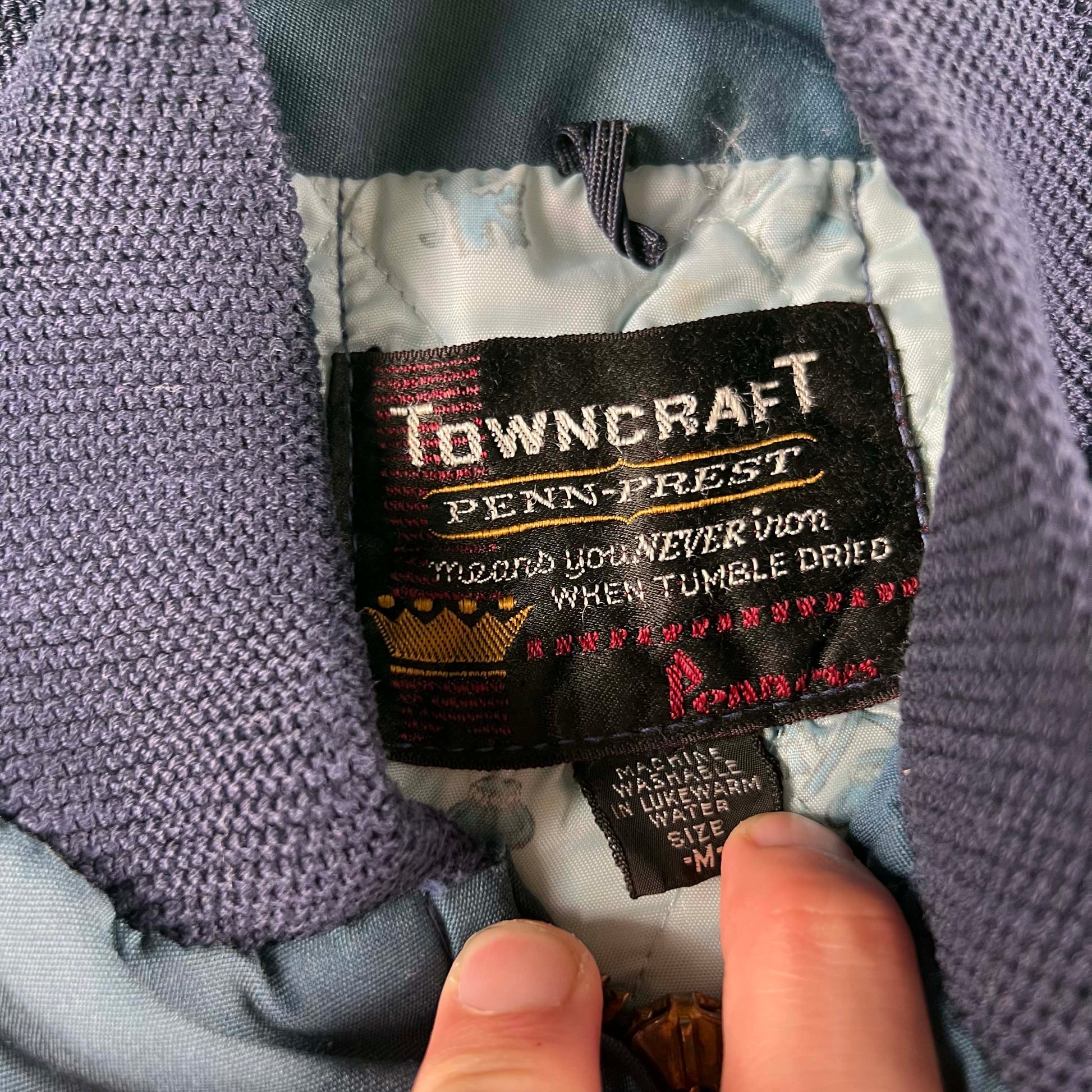 AMAZING sun fading!!! love the detailed quilt lining on this Towncraft jacket. v cool talon zips on the pocket. main zipper is missing the pull but still works. perfectly thrashed knit cuffs. so so good