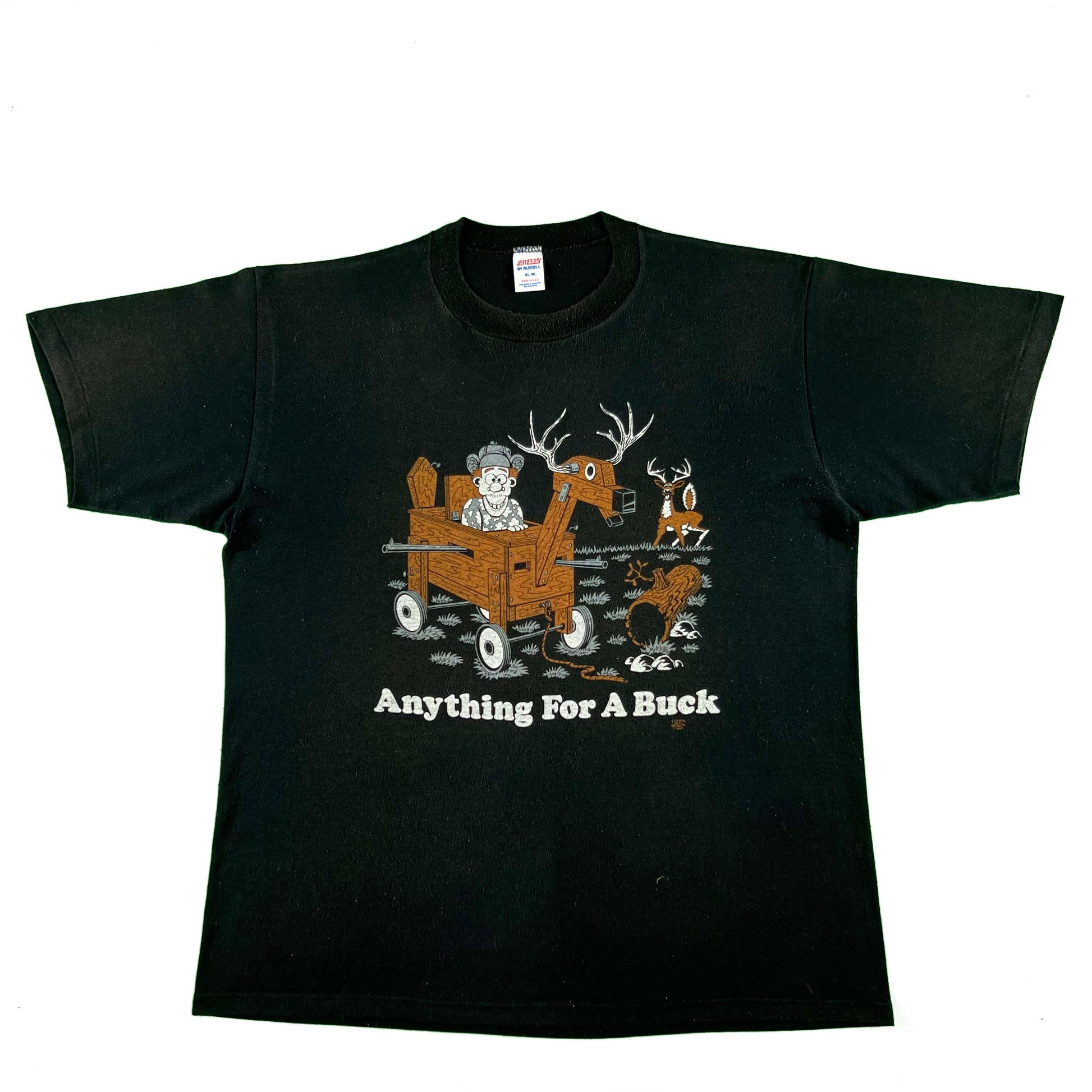 hahaha fantastic faded black deer tee. The hunter patrolling in a wooden deer like vehicle