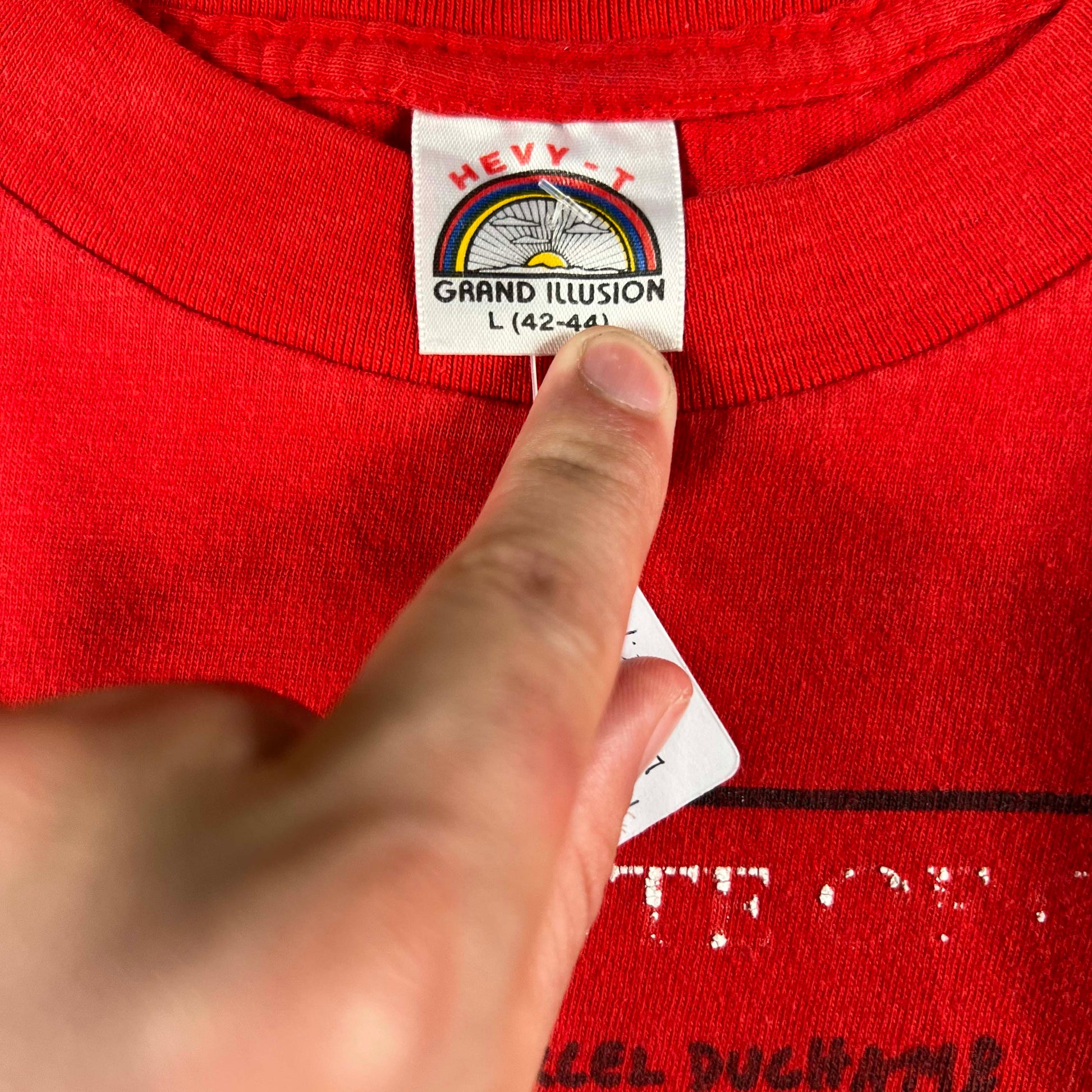 love this one so much!!! so many of the great artists on a soft Hanes Beefy-T, has some wear but I gave it an oxi soak so it looks wayyyyy better. Just added a red tee in stock!! love the wear and fading on that one. Tagged a L- see pics for measurements