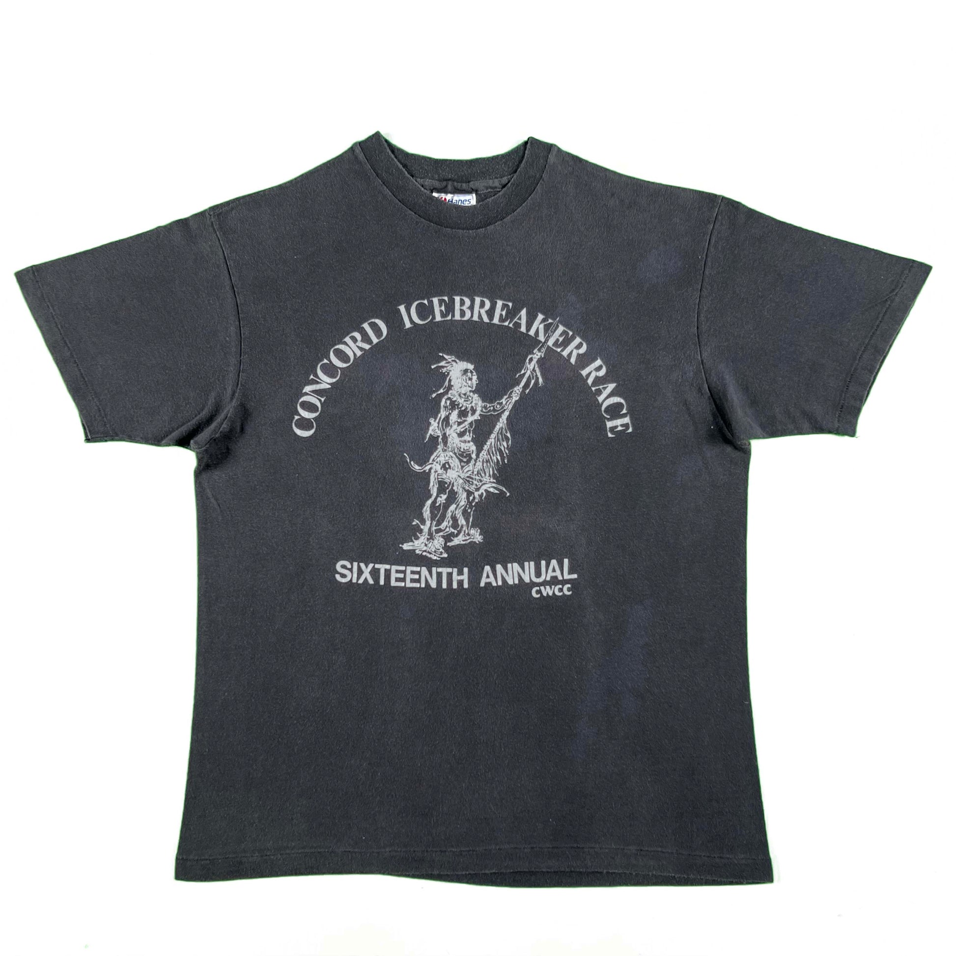 UGH I can't find any info on this one but such a cool tee!! appears to be a rowing race. dated 1985 and in that PERFECT sun faded black/grey color