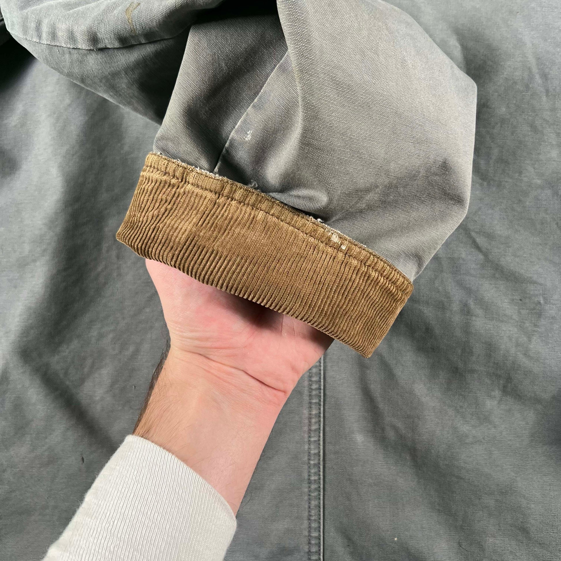 great hunting style/barn chore jackets!! amazing sun fading on some! love the corduroy collars and cuffs. Some have flannel linings, some quilted, some are just straight cotton canvas. Perfect jackets as we head into fall. various distressing and wear