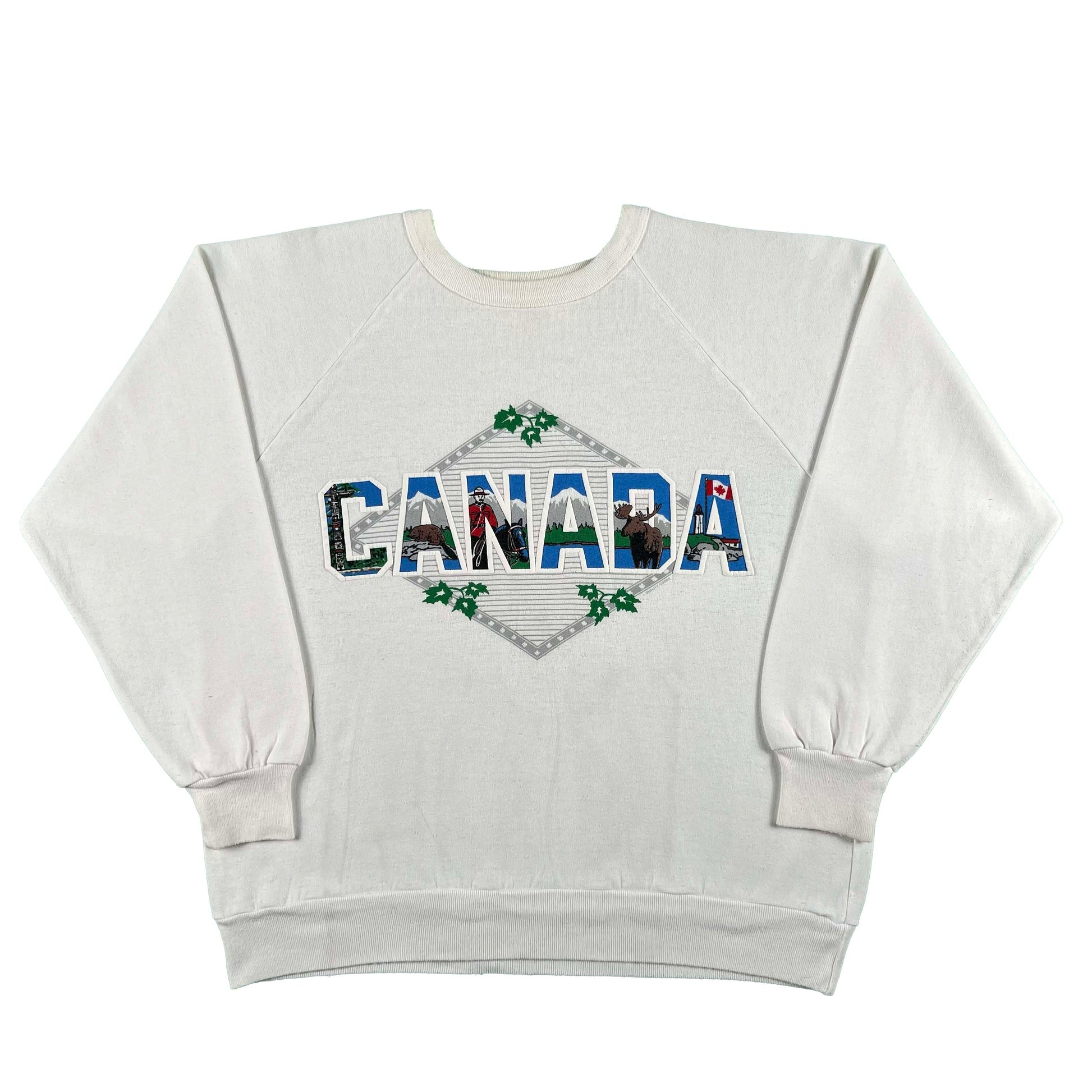 love a good light raglan cut sweat!! clean Canada graphic with a lot of the Canadian staples, made in Canada white blank