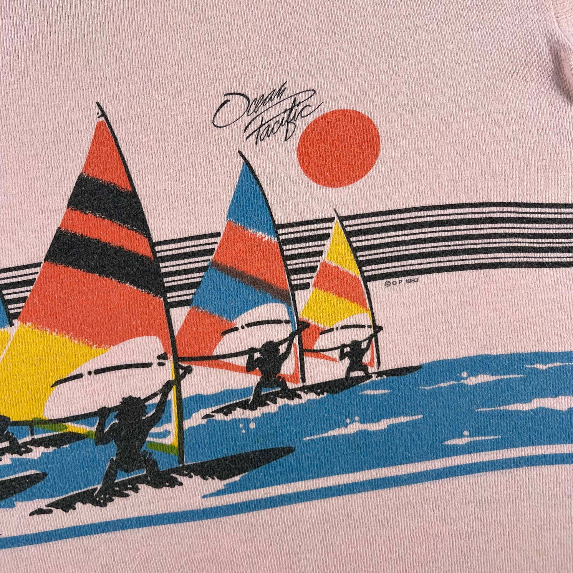 great older OP long sleeve tee!!! windsurfing graphics on the front and back which wraps around, really nice pink color!!