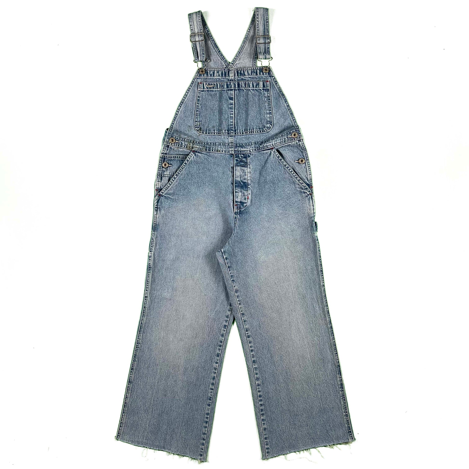 awesome denim overalls from Gap. chopped to a raw hem and has some staining. They are tagged a Women's XL but with the raw hem I recommend a size M best!