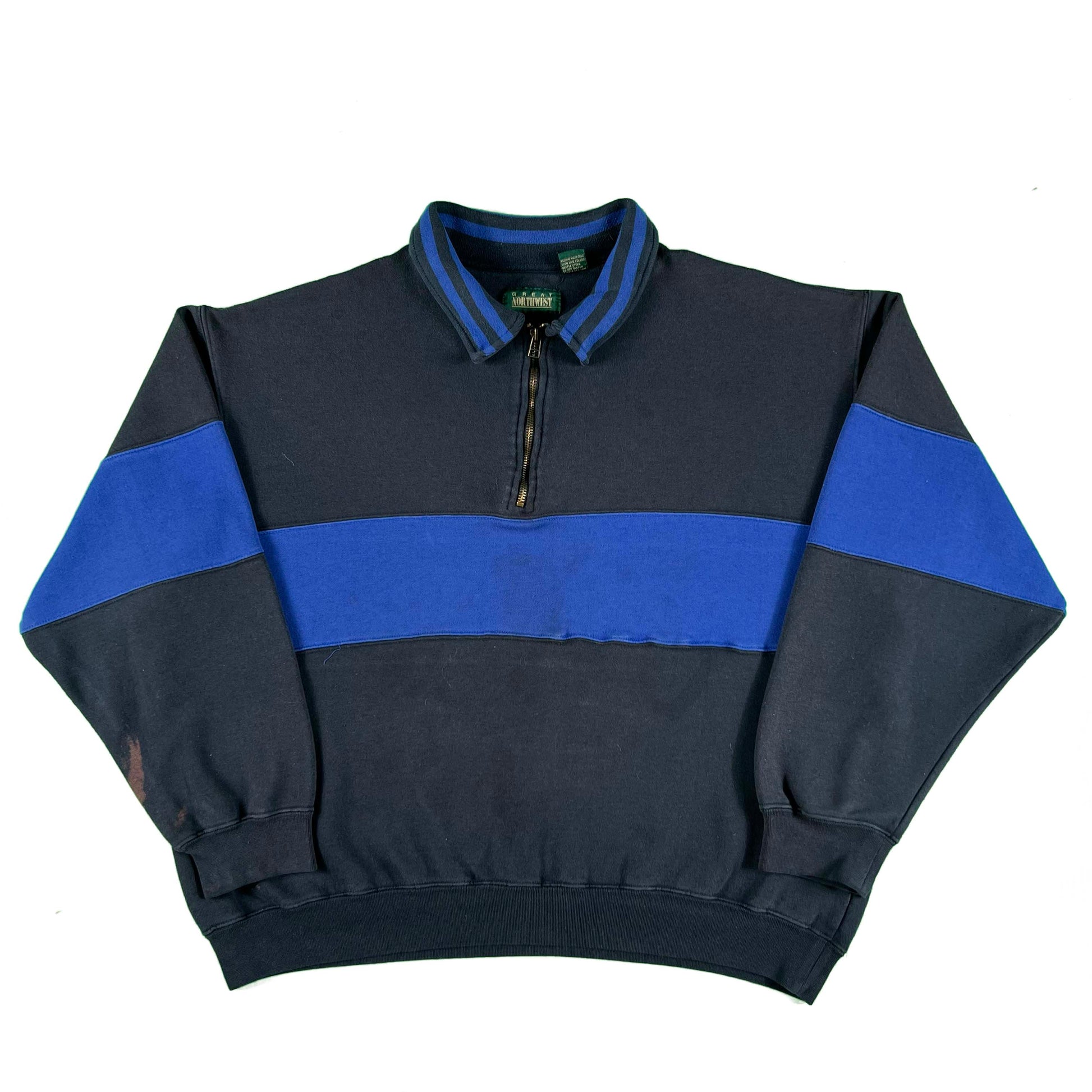 90s Striped 1/4 Zip Cropped Sweatshirt- L