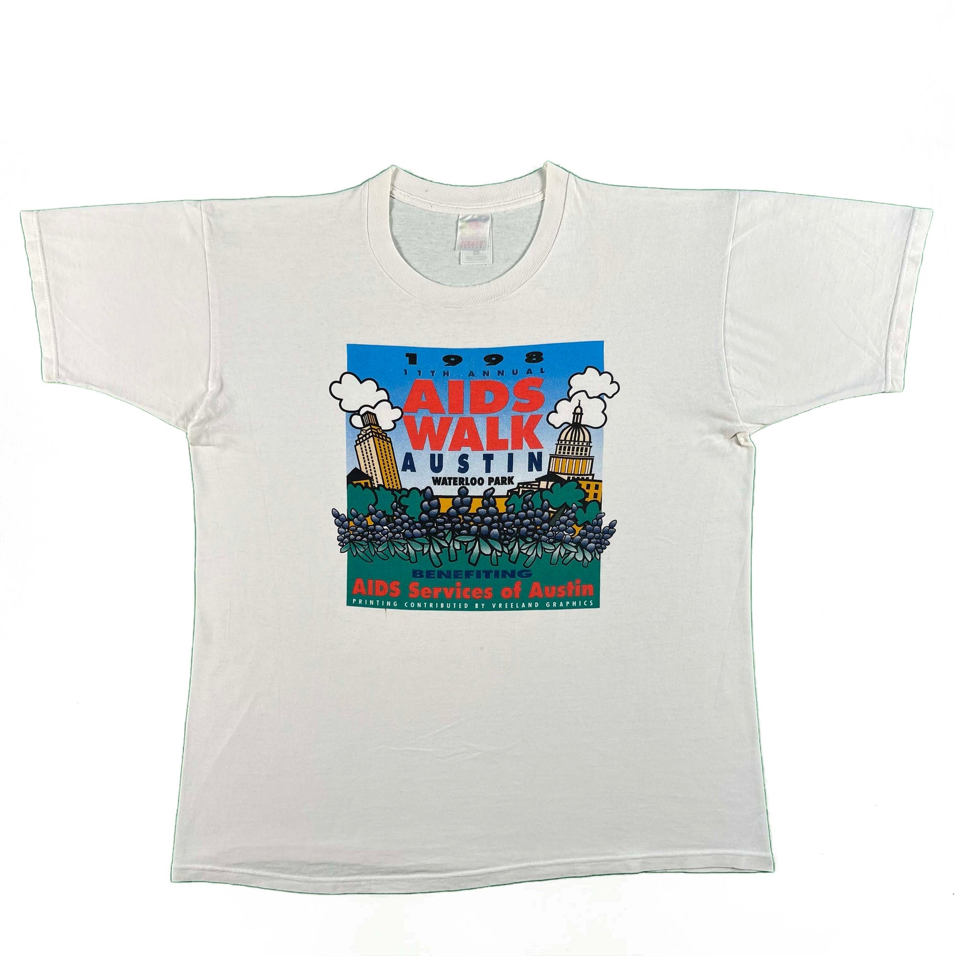 fantastic larger art style graphic from the 1998 AIDS WALK AUSTIN in the Texas!! Honda, Motorola, and lots of local texas sponsorships on the back