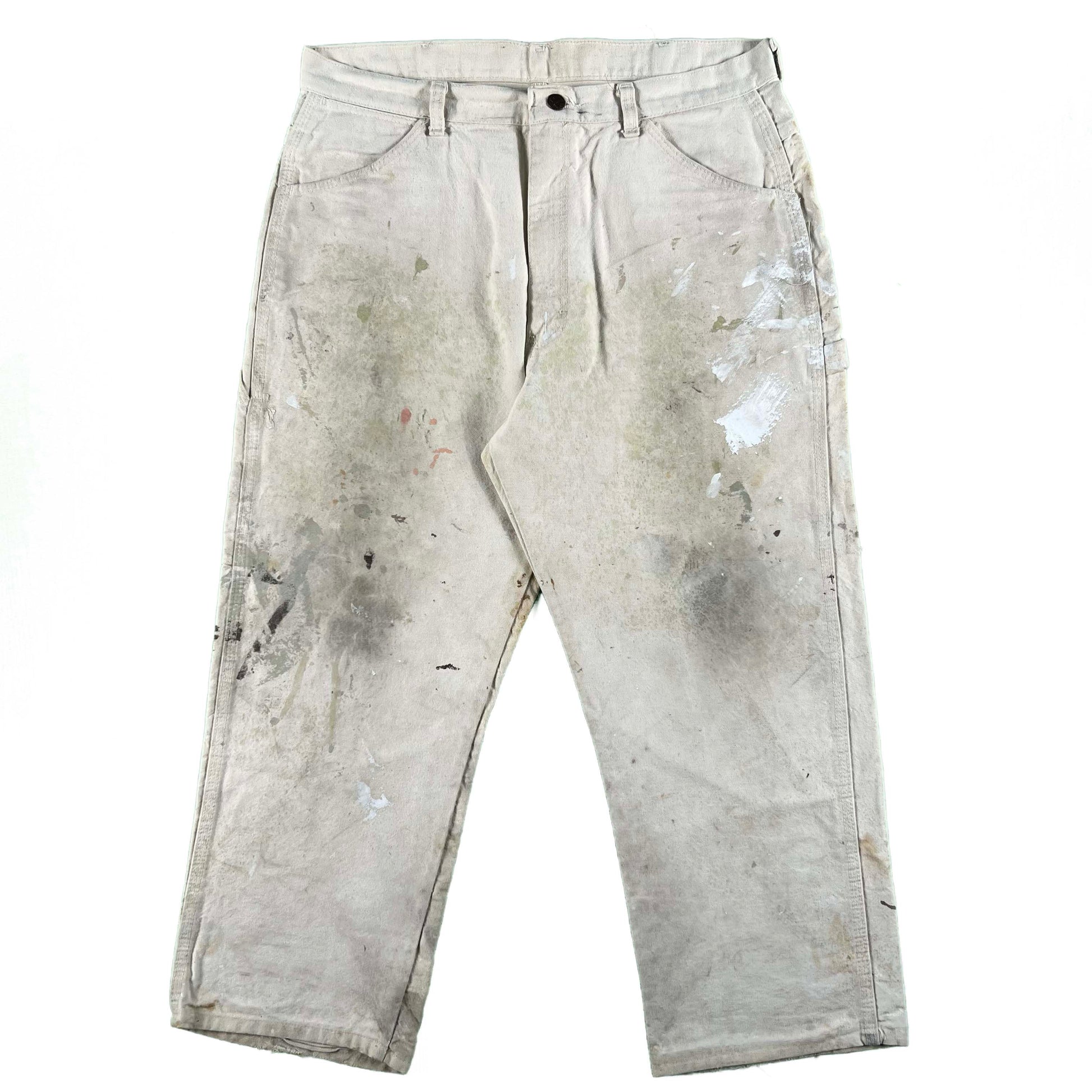 gnarly lil pair of cream painter's pants form Big Ben(Wrangler line I believe). Def a shorter pair here. lots of paint splatter and wear!