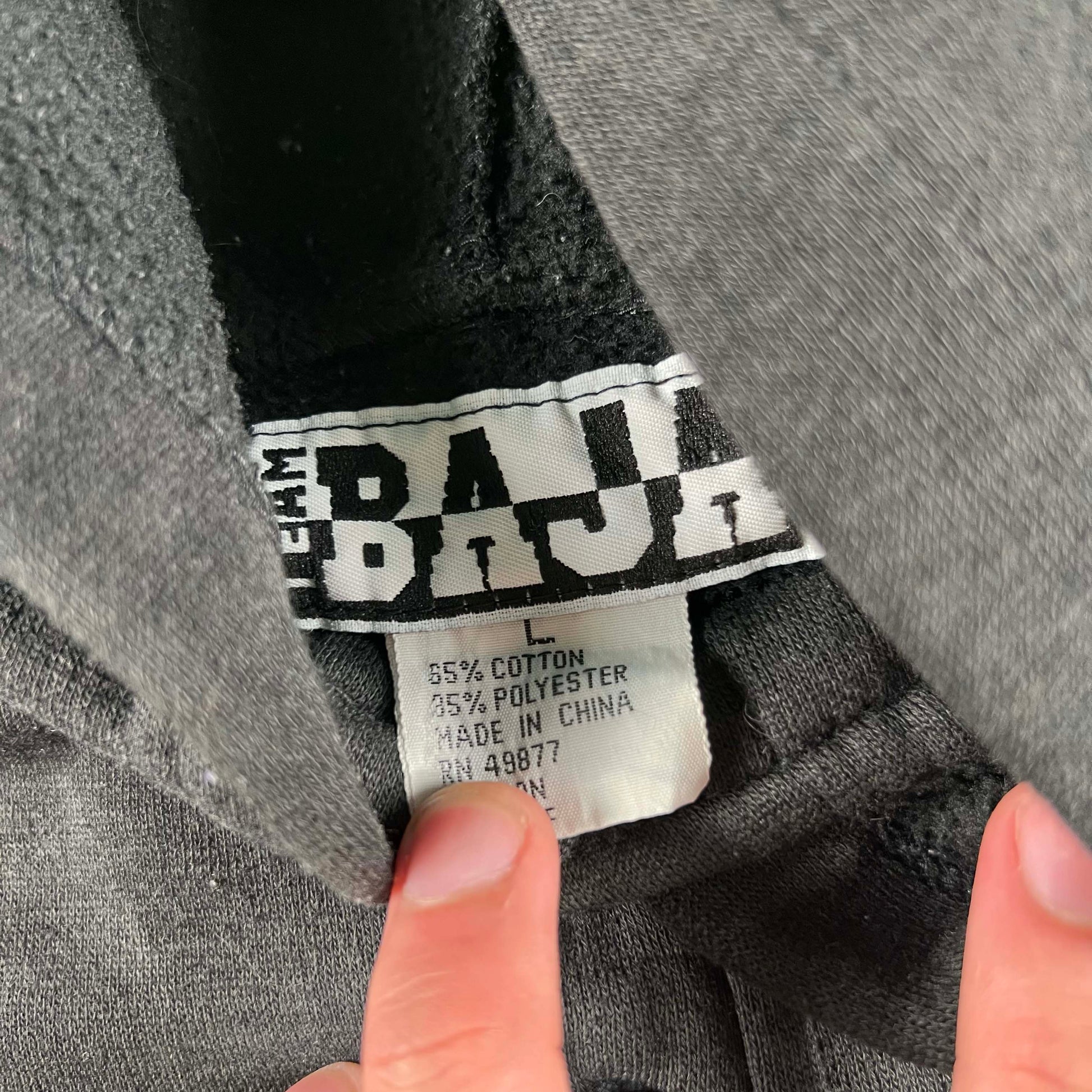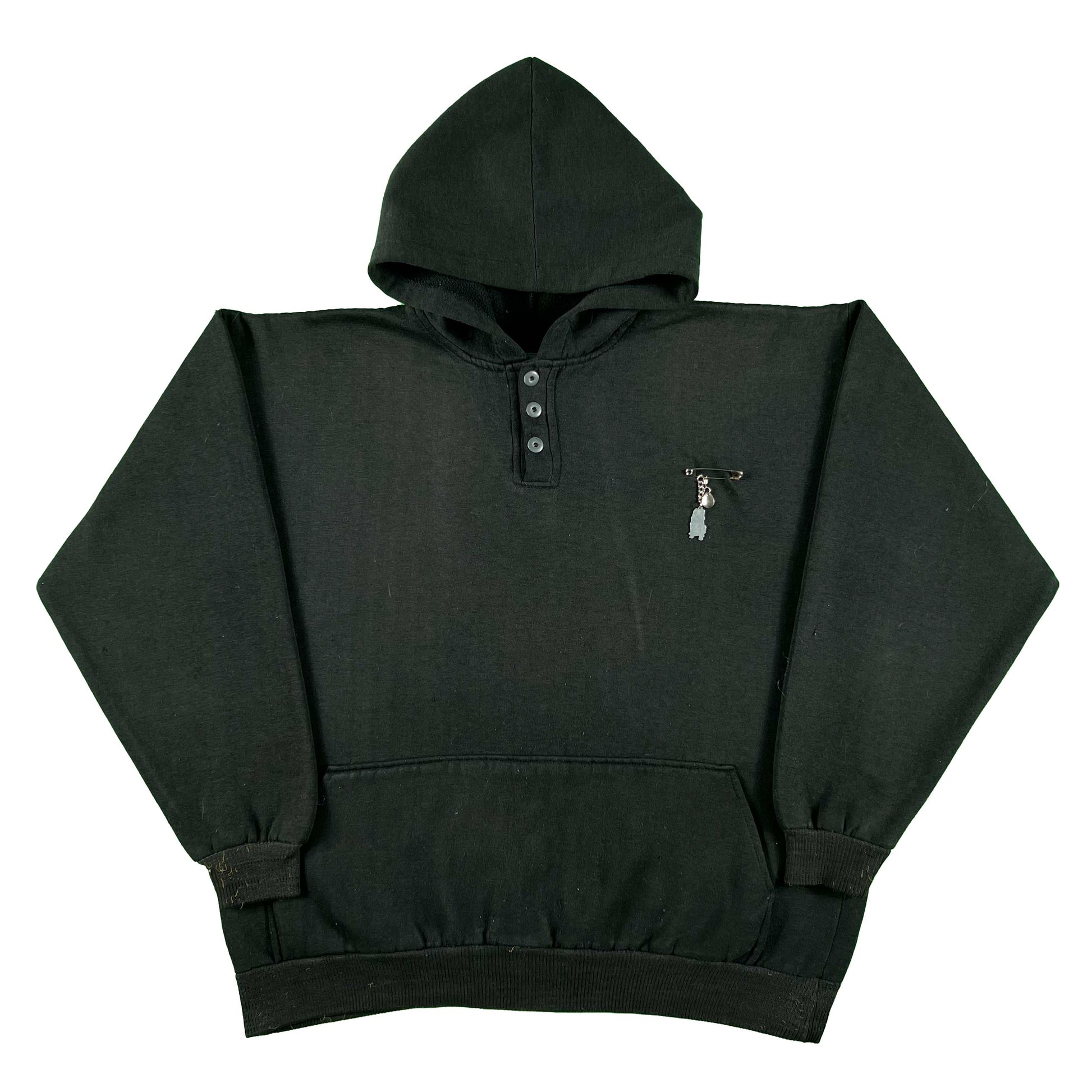 boxy faded black hoodie with a safety pin silver and dog charm added!! Team Baja blank