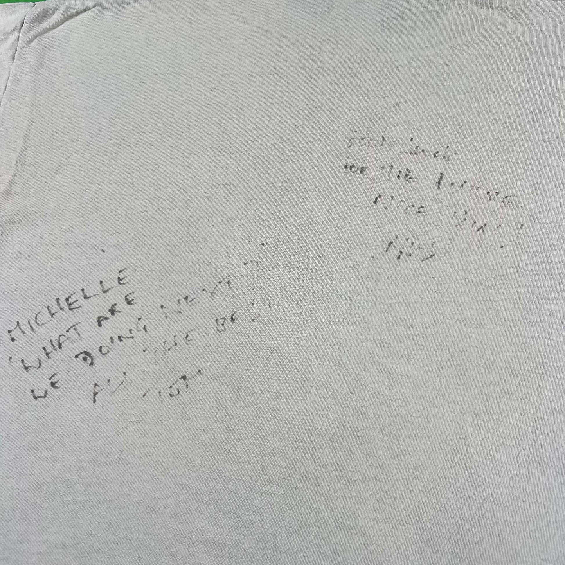love the cropped hem and sleeves!! killer big front hit but I can't figure out who the player is, there are also two signatures on the back!