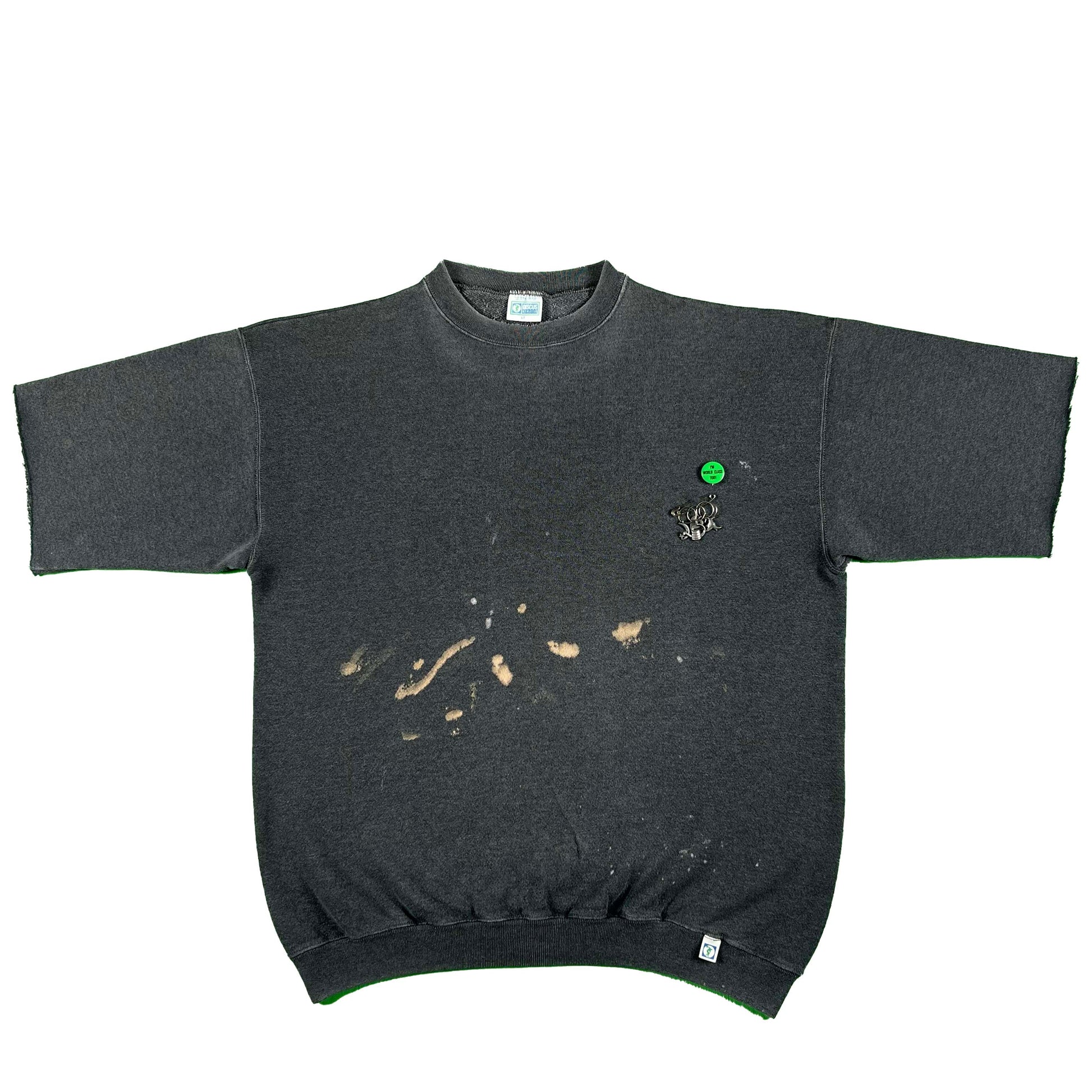 you get both! L Tall tags. fit a baggy size L best! I freaking love this one. You obviously don't have the wear the two together but I figured you might as well get both since they match...killer faded dark grey color with bleach stains and chopped sleeves on the top. I add some cute charms and a bright green pin for a little pop of color