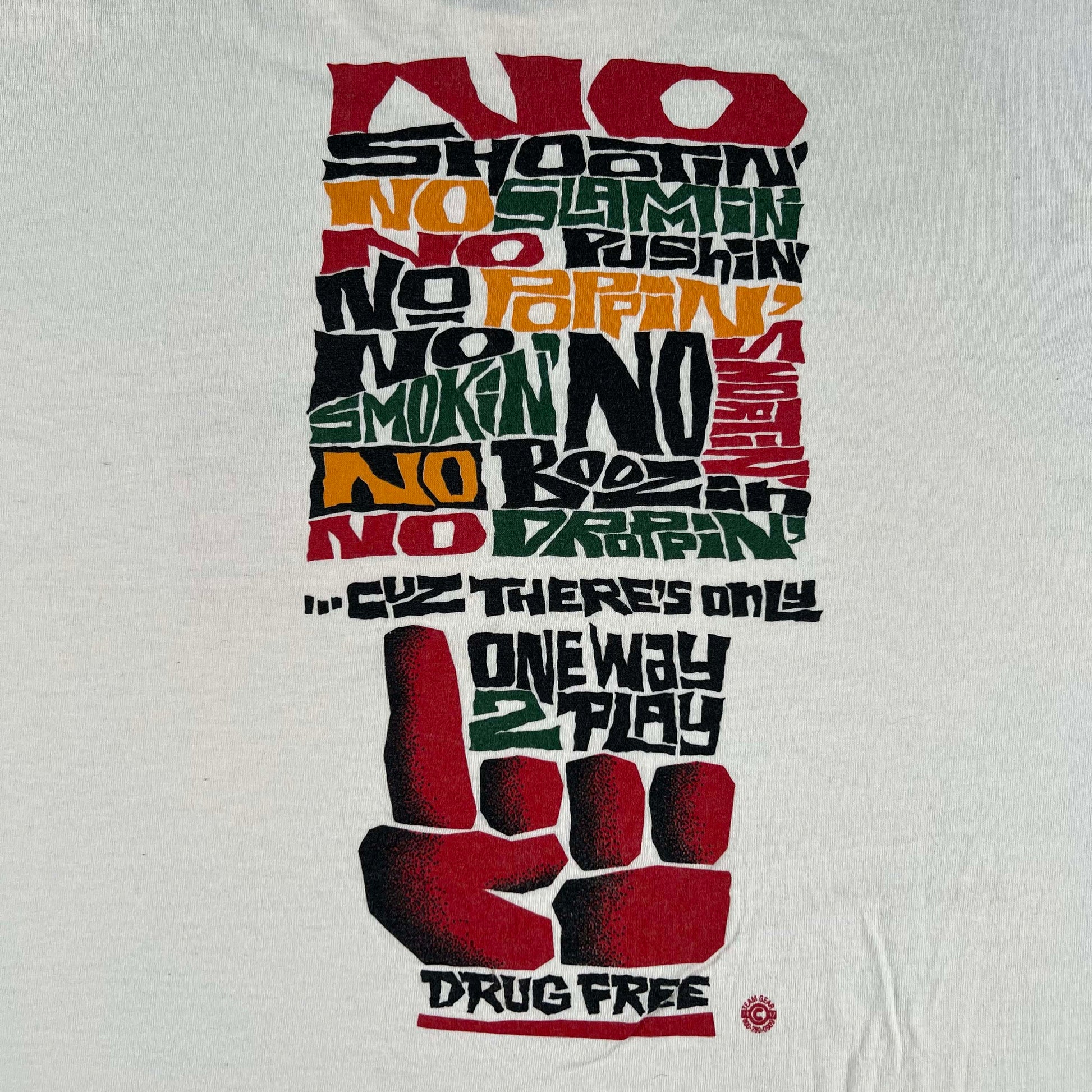 No shootin', no slamin', no pushin'. love the rasta inspired say to no drugs vibes. I believe this is for all sports but Idk I just first thought for lacrosse lol