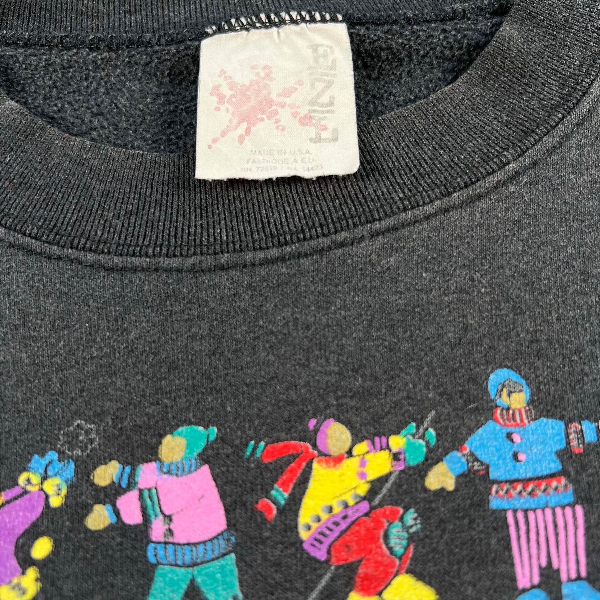 90s Faded Black Winter Dancing Scene Sweatshirt- XL