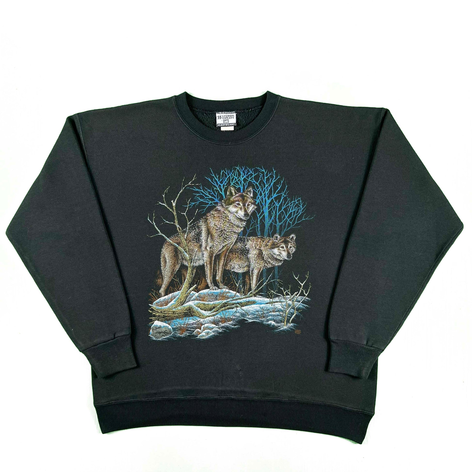 awesome wolf graphic on a boxy faded black blank!! I really love the loud animal print vintage sweats and tees!