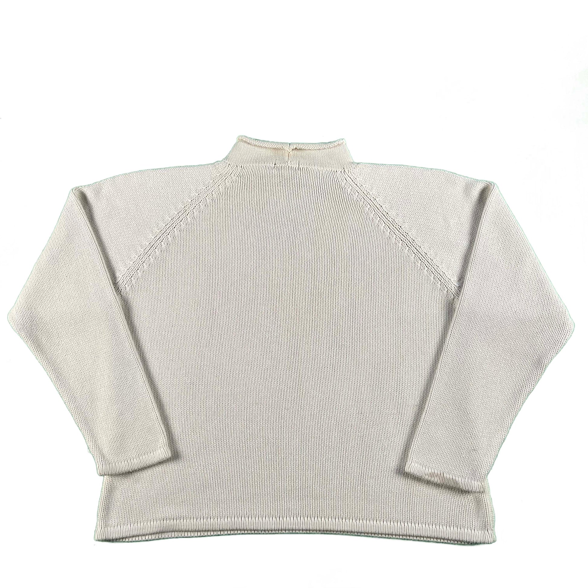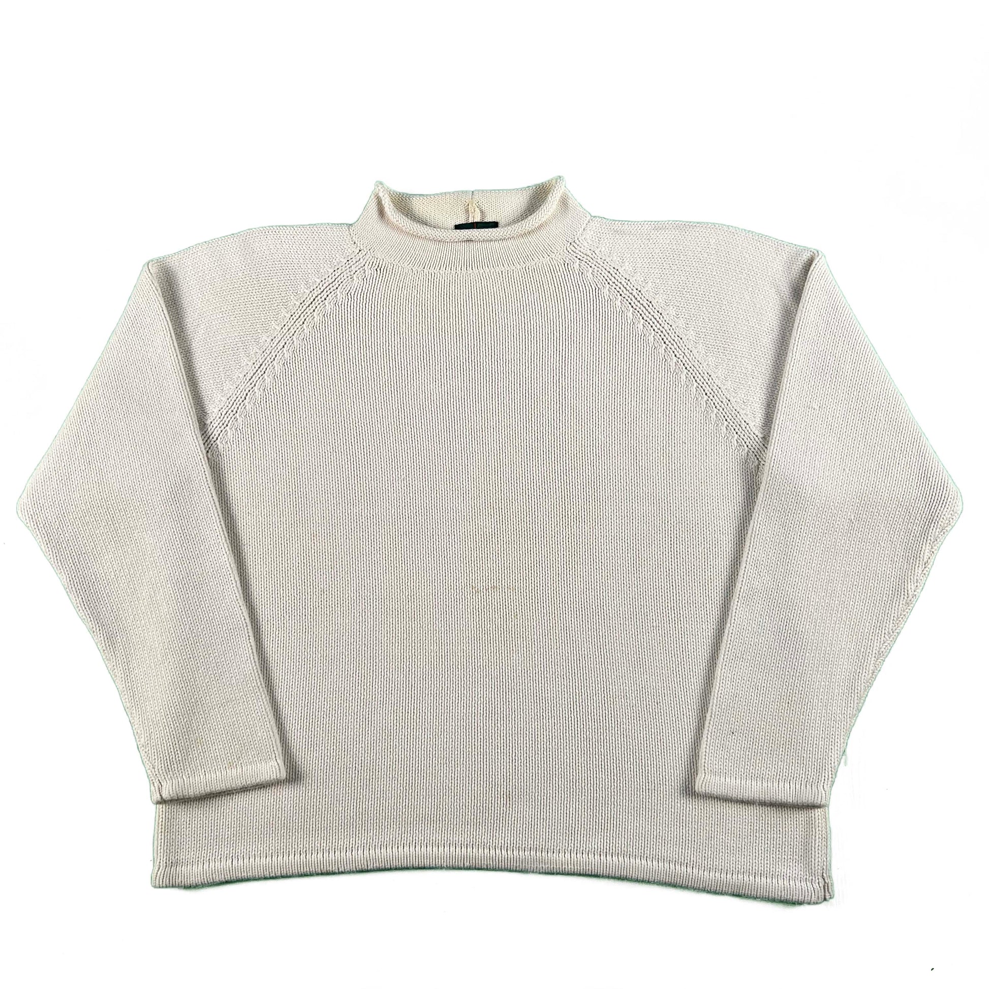 iconic J.Crew cotton knit sweater!!! classic 'roll' neck and super cozy fit for the fall. there are some markings/wear on the neck but I got most of them out!!