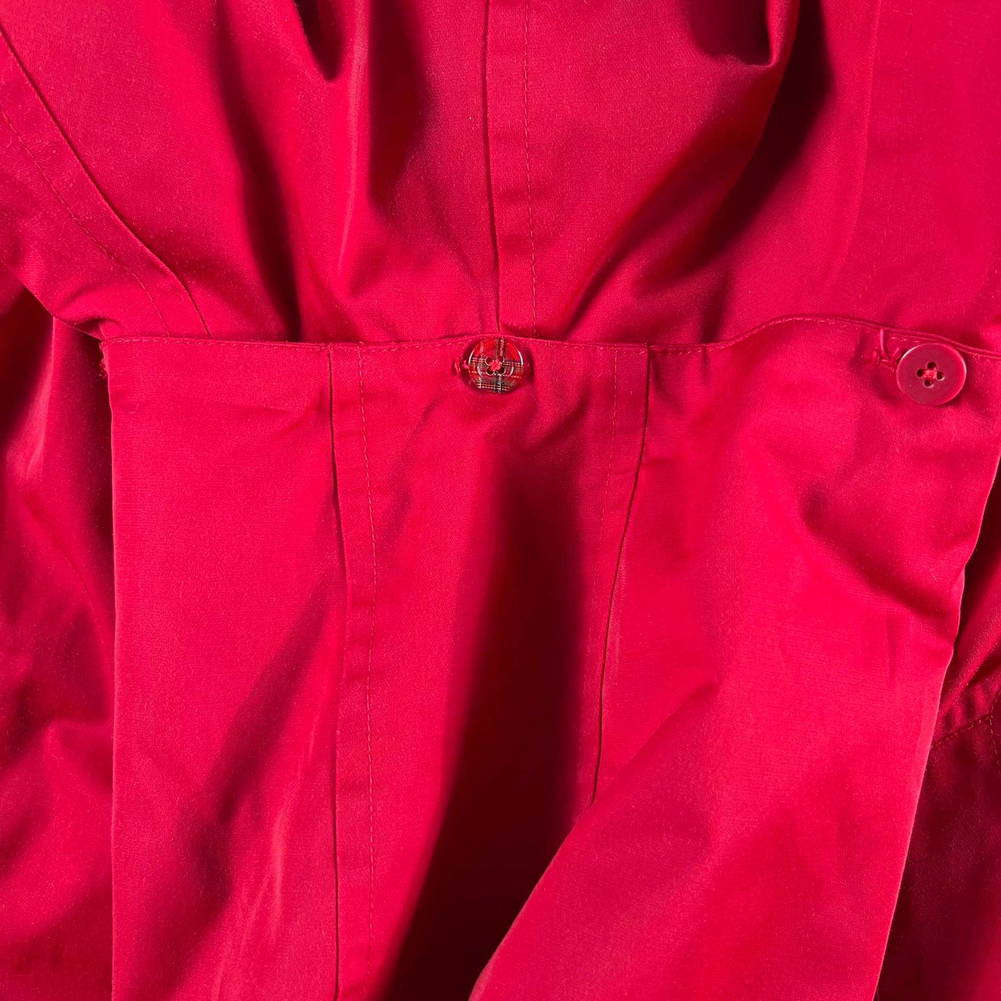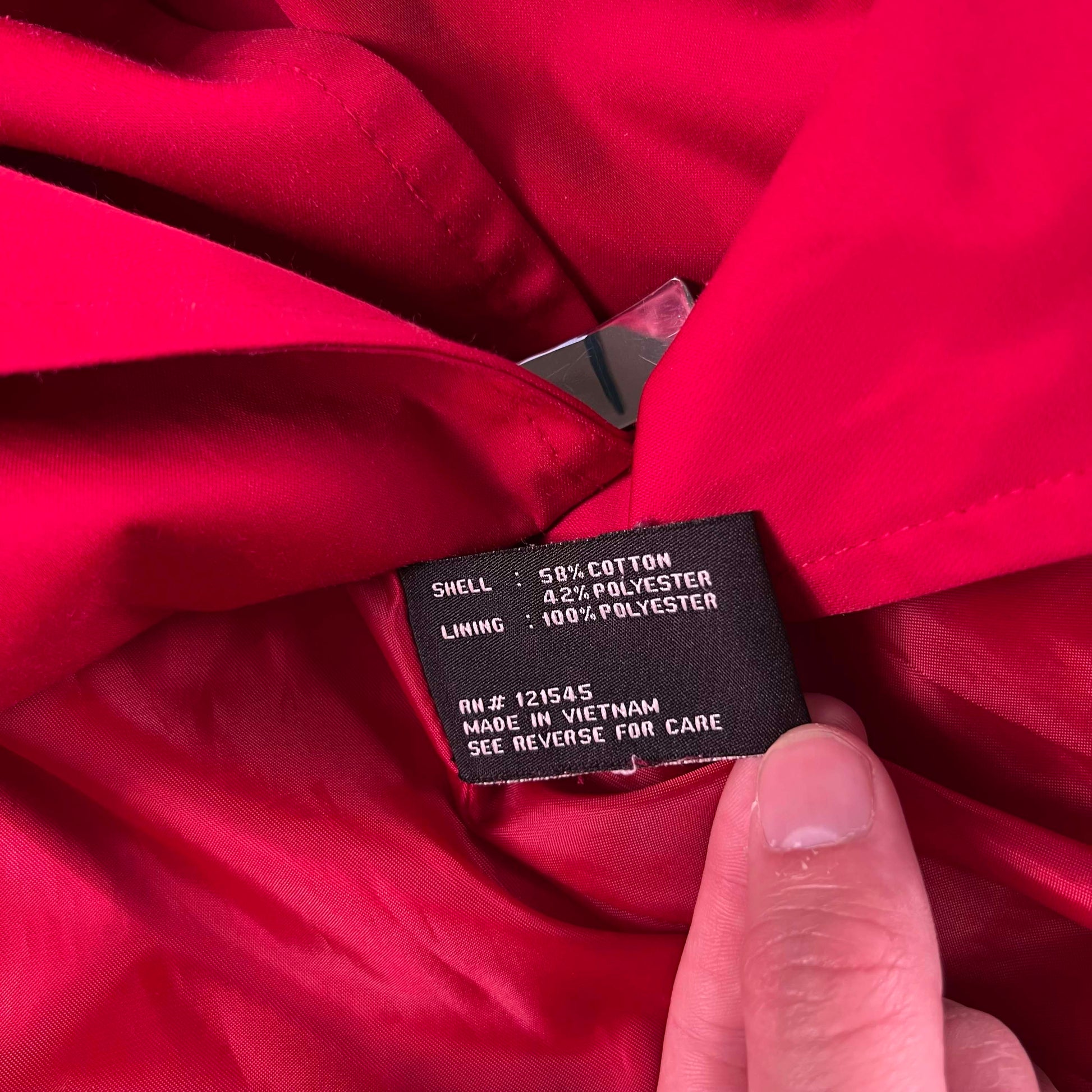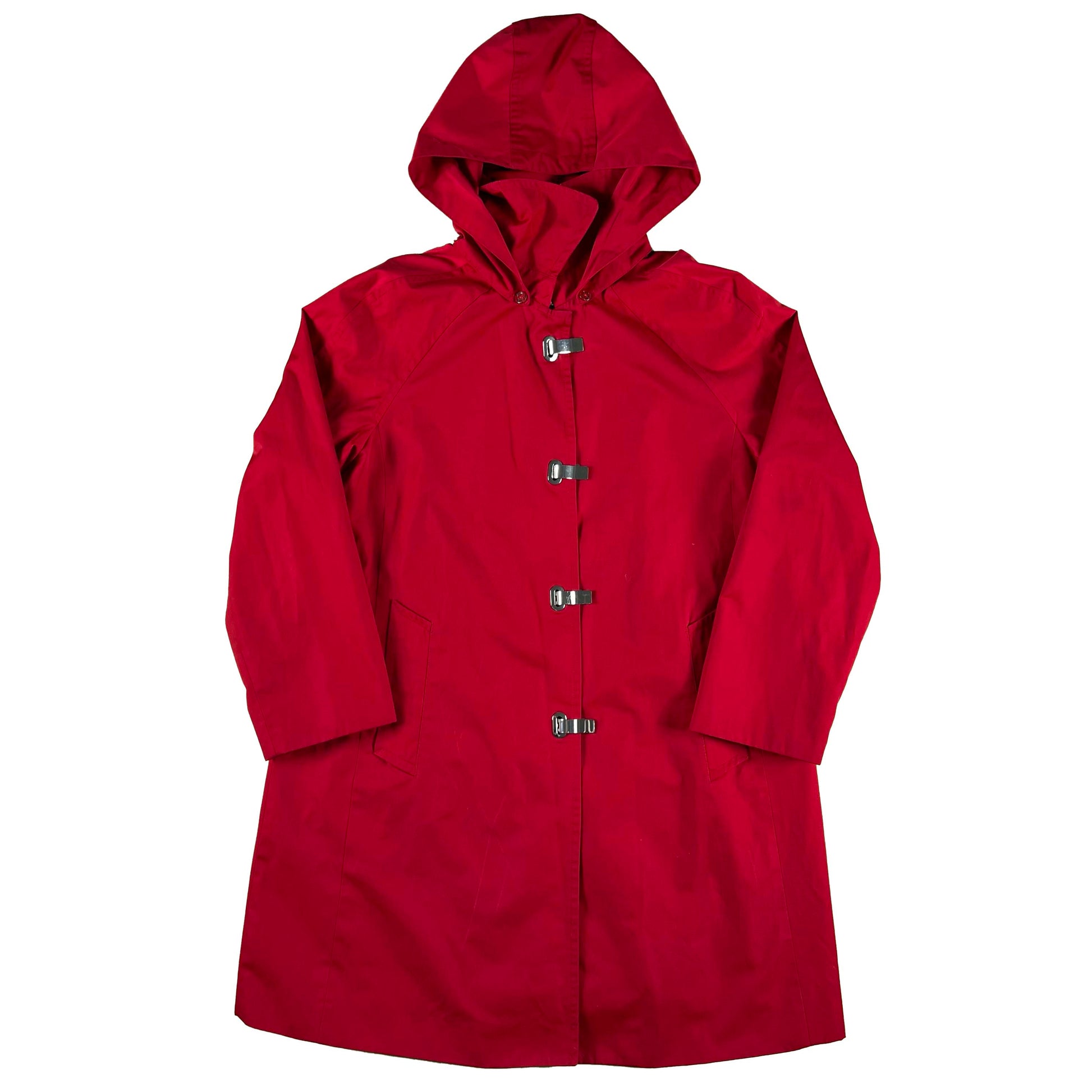 love the clasps on these! very satisfying. clean red color with a great lighter weight for spring, hooded!!