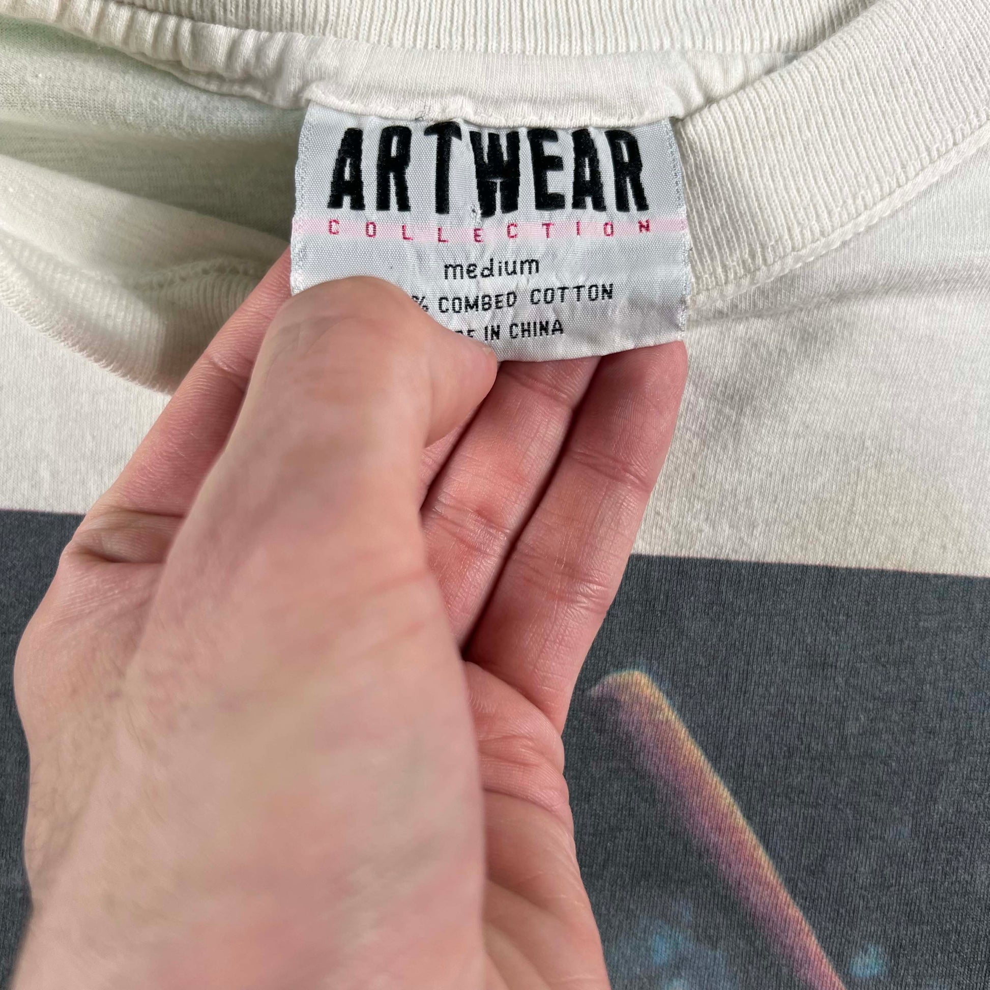 what a beauty!!!! features some art this is Cooperstown of Lou Gehrig. He tragically died of ALS in the 40s but his name still remains prominent(mainly due to the connection to the disease albeit). Bozy fitting white blank on a 100% combed cotton GOOD made in china tag. Love the raised collar. Has some markings but they look a lot better after I gave them an oxi white revive bath