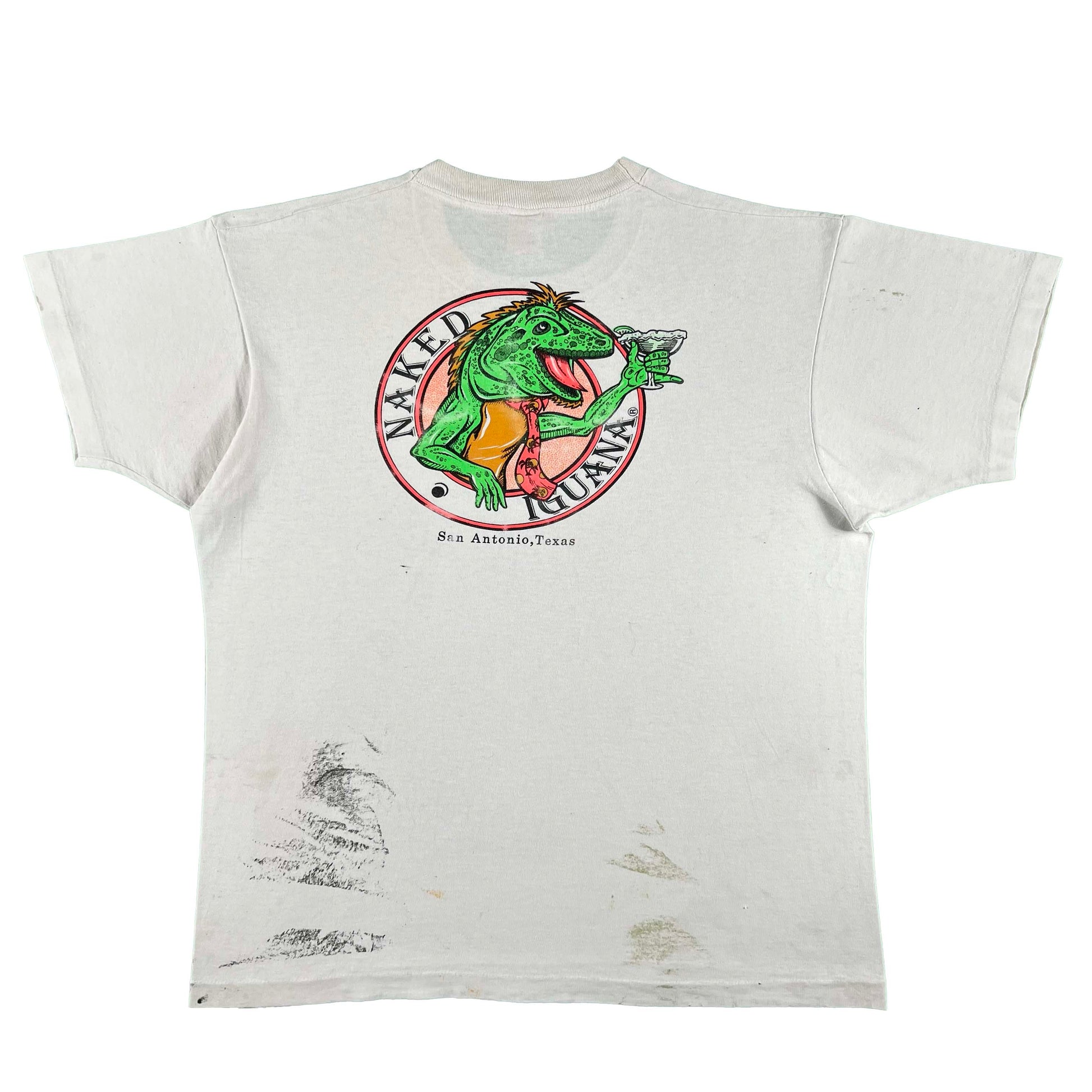 awesome white painters tee with a drinking Iguana back hit!!! right on the riverwalk in SATX. I like the tasteful amount of paint splatter here