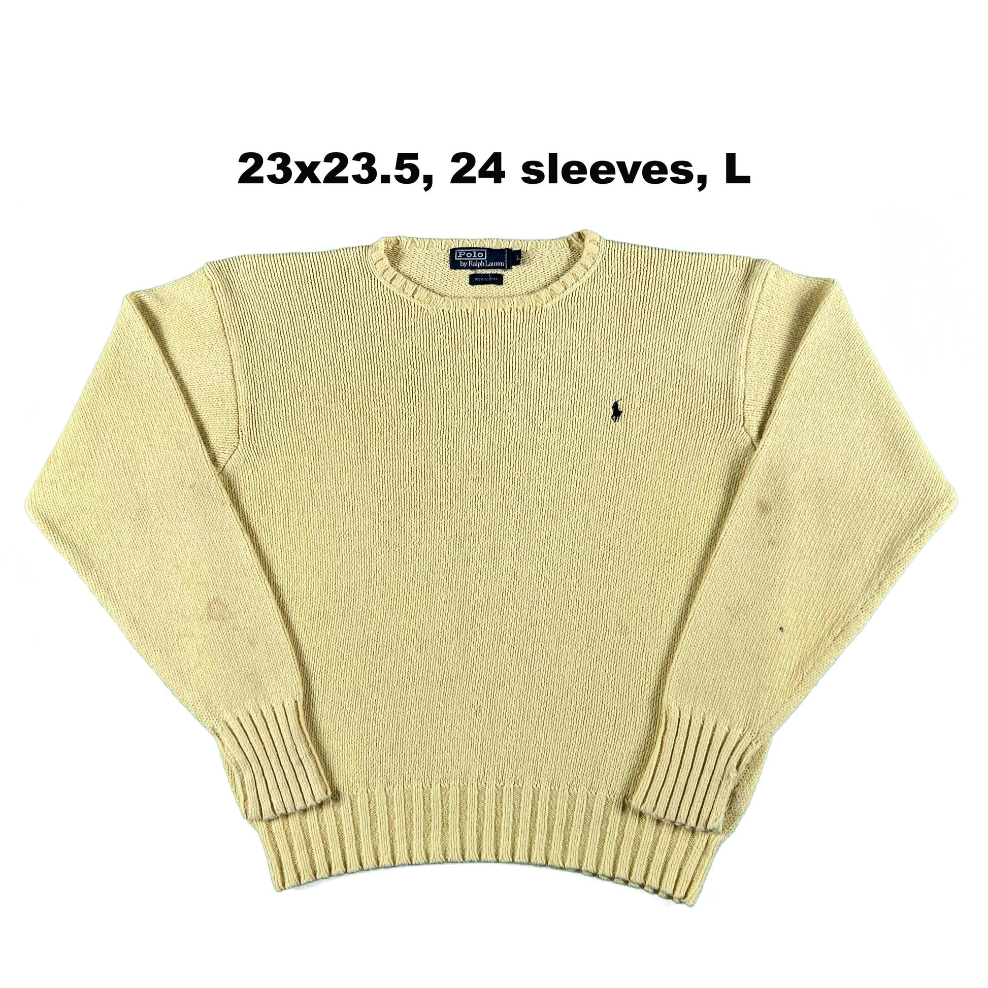 cozy 100% cotton knit sweaters from Polo by Ralph Lauren, Ralph Lauren, etc! 1980s to modern knits with various fading and wear. a mix of heavyweight and thinner light ones!! perfect piece to add to a preppy look :)