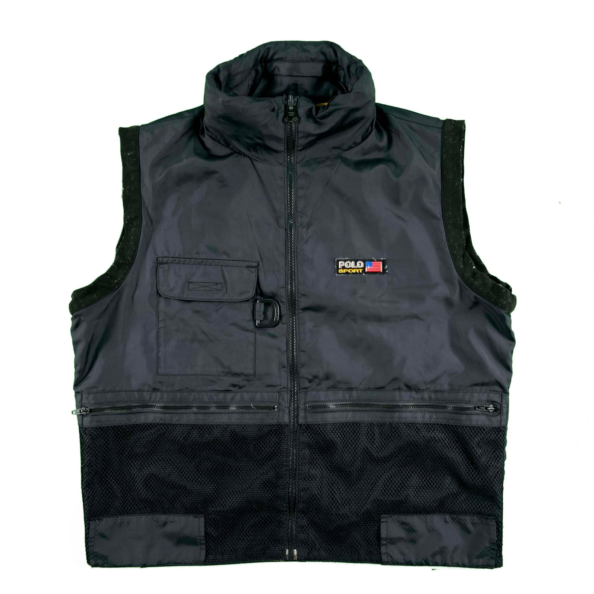 such a sick 90s vest!!! love the yellow side especially. lots of fun pockets and details as well as a cool Polo Sport by Ralph Lauren tag