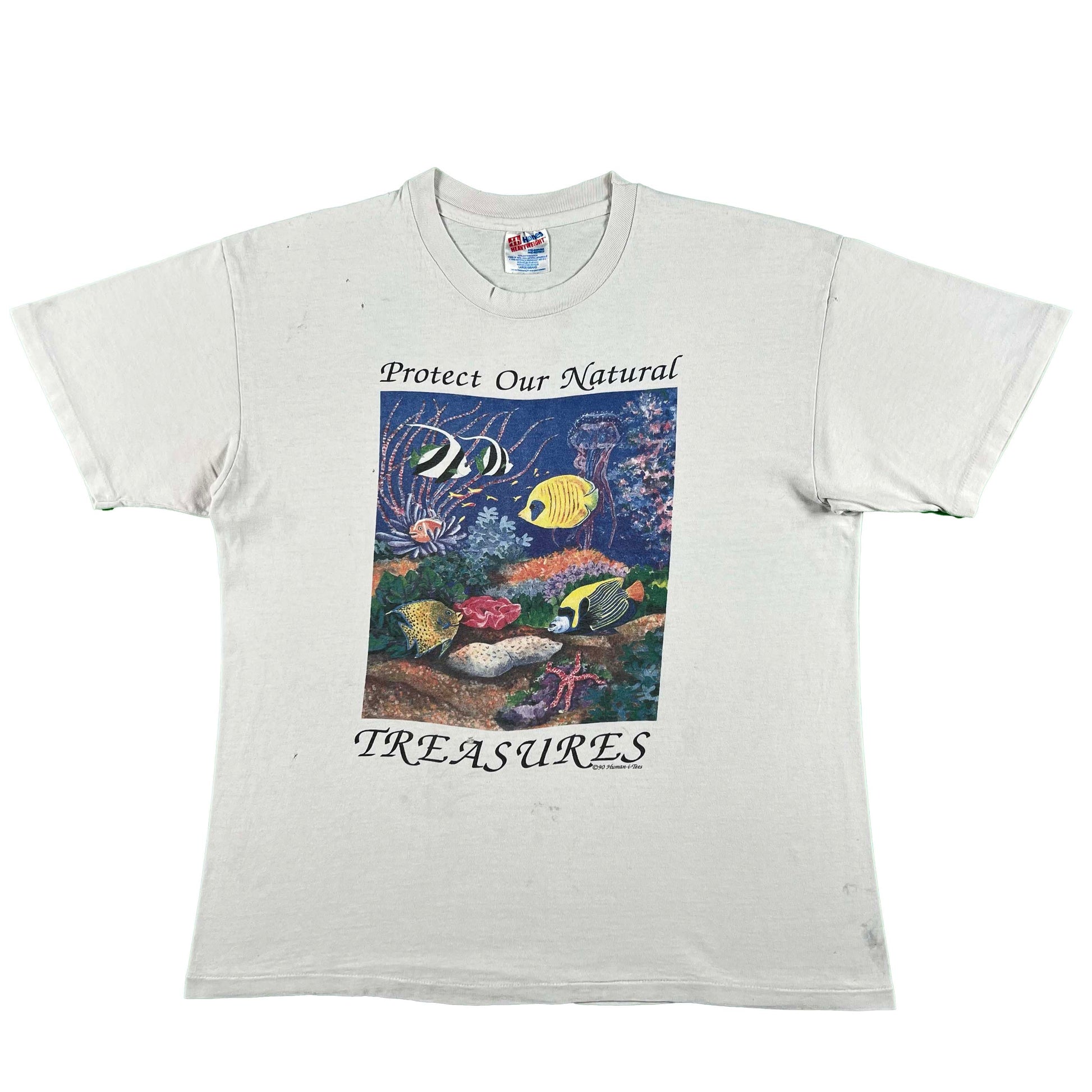 killer conservation tee!! protect the fish and coral reefs :) on a white single stitch blank
