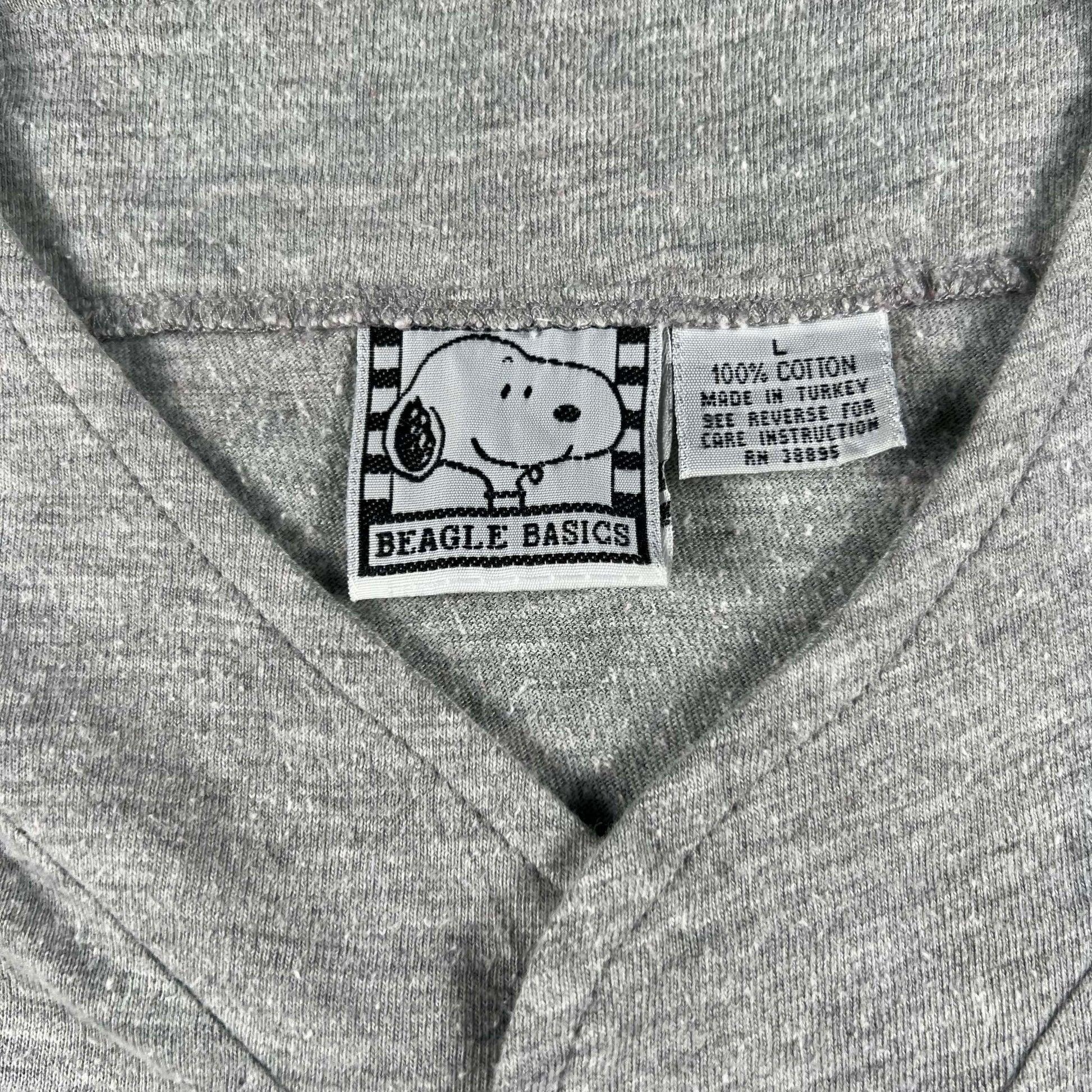 cool Snoopy baseball style tee!! on a 'Beagle Basics' tag. clean navy and grey colors!