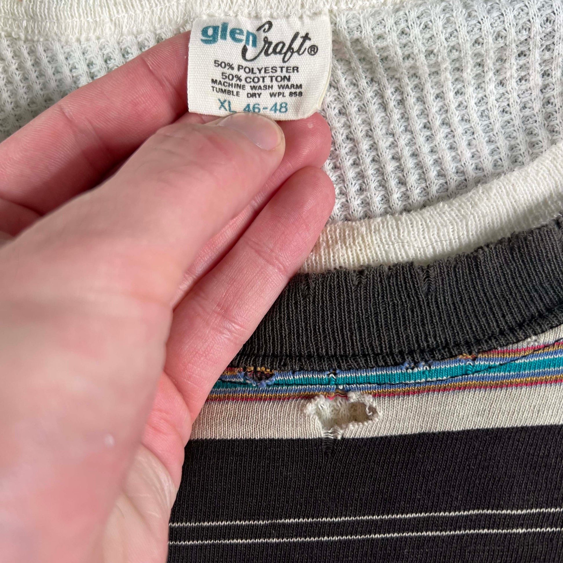 90s Thrashed & Safety Pinned Striped Tee & Waffle Knit Thermal- XL