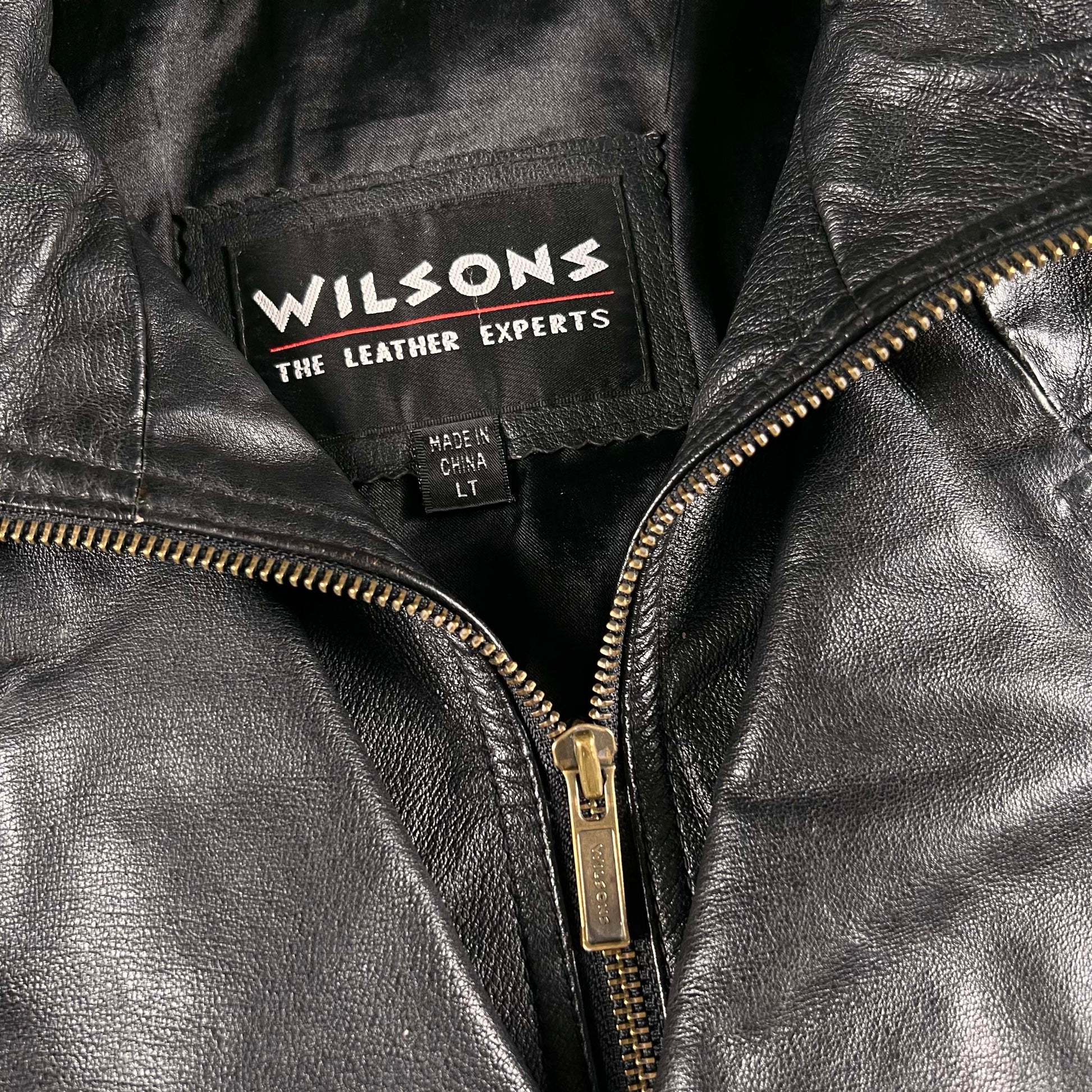 90s Wilsons Black Leather Blazer Collar Bomber Jacket- L