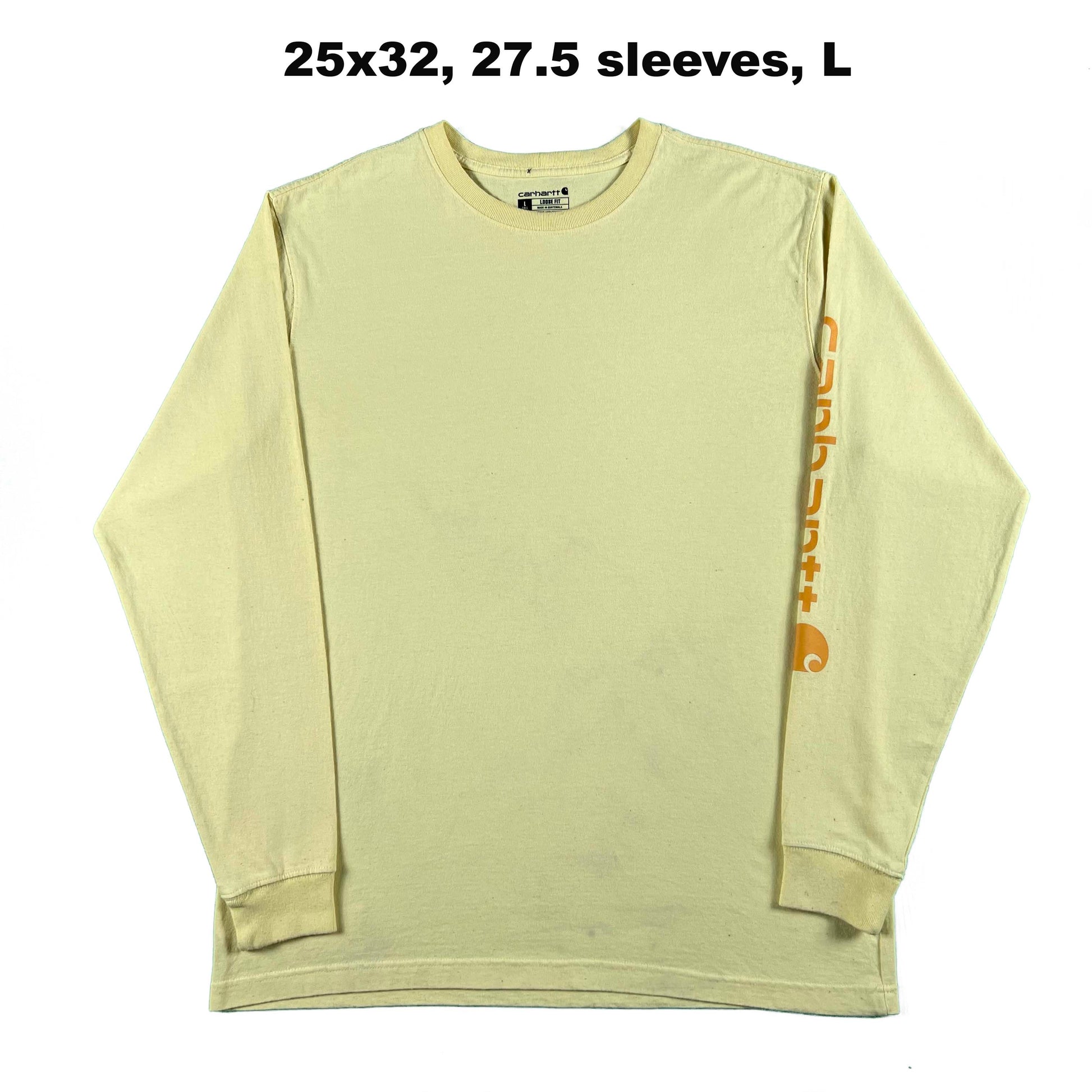 love these Carhartt long sleeves!! various pocket, blank, and henley's available. A mix of fading, distressing, paint, etc!! see pics for available tees! they tend to measure oversized and fit nice and baggy/comfy